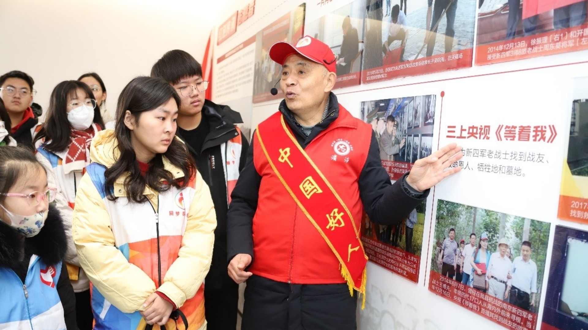吴李留洋同学带领45名学生志愿者一同听“中国好人”、“江苏省道德模范”徐振理讲述红色故事。这位退役老兵历时39年,踏访千山万水,足迹遍及家乡田野、档案馆和纪念馆,为新四军老战士找到战友和救命恩人。她和志愿者们深受触动,开展了“玉龙路创文明”志愿服务活动、讲述红色故事演讲比赛等等,立志做红色基因的传承人,做红色文化的传播者。