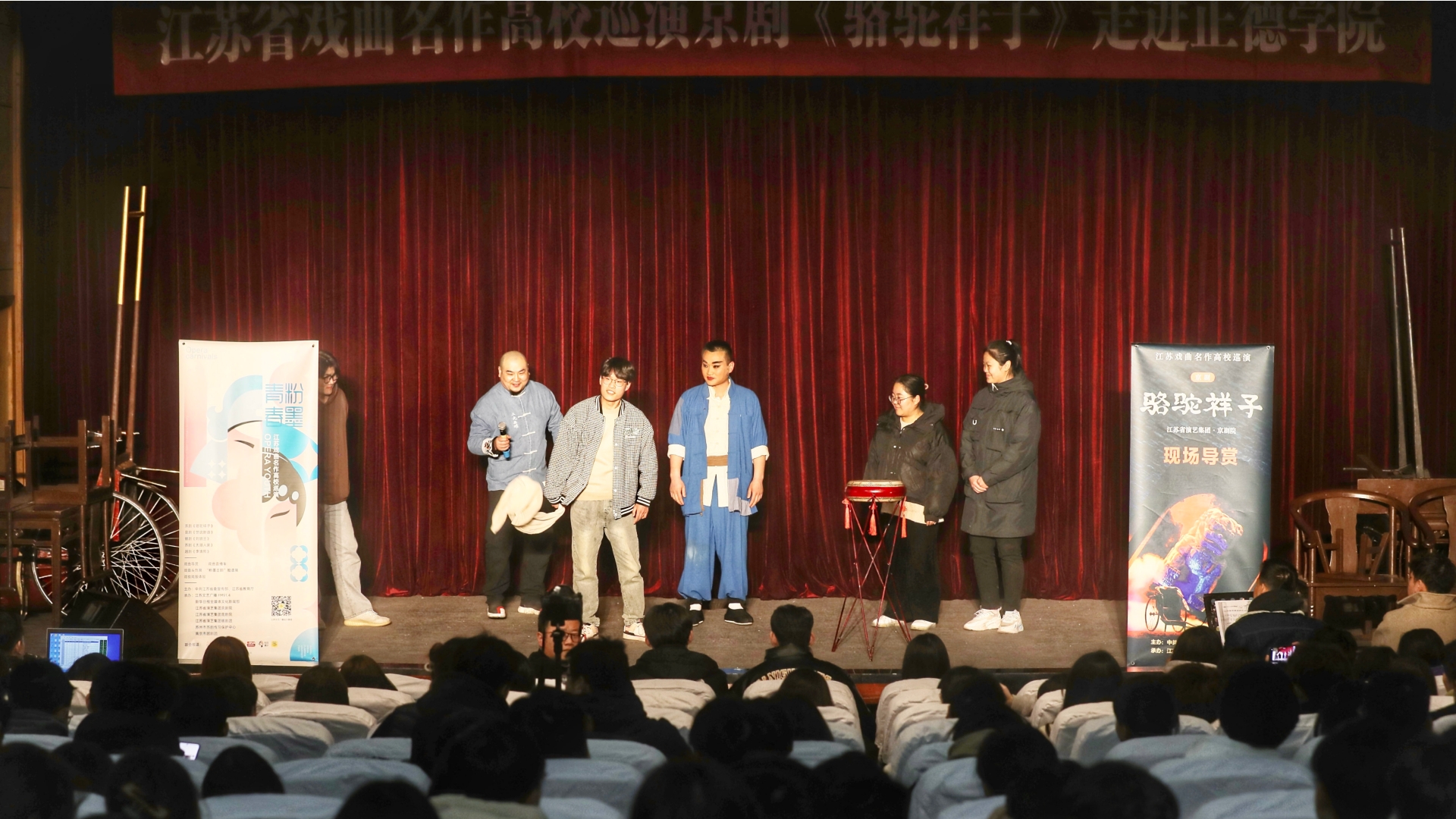 粉墨青春,青春有戏!为认真贯彻落实中央、省关于“戏曲进校园”工作的部署要求,弘扬中华优秀传统文化,增强文化自信。3月2日下午,由江苏省京剧院创作的《骆驼祥子》在报告厅精彩上演。