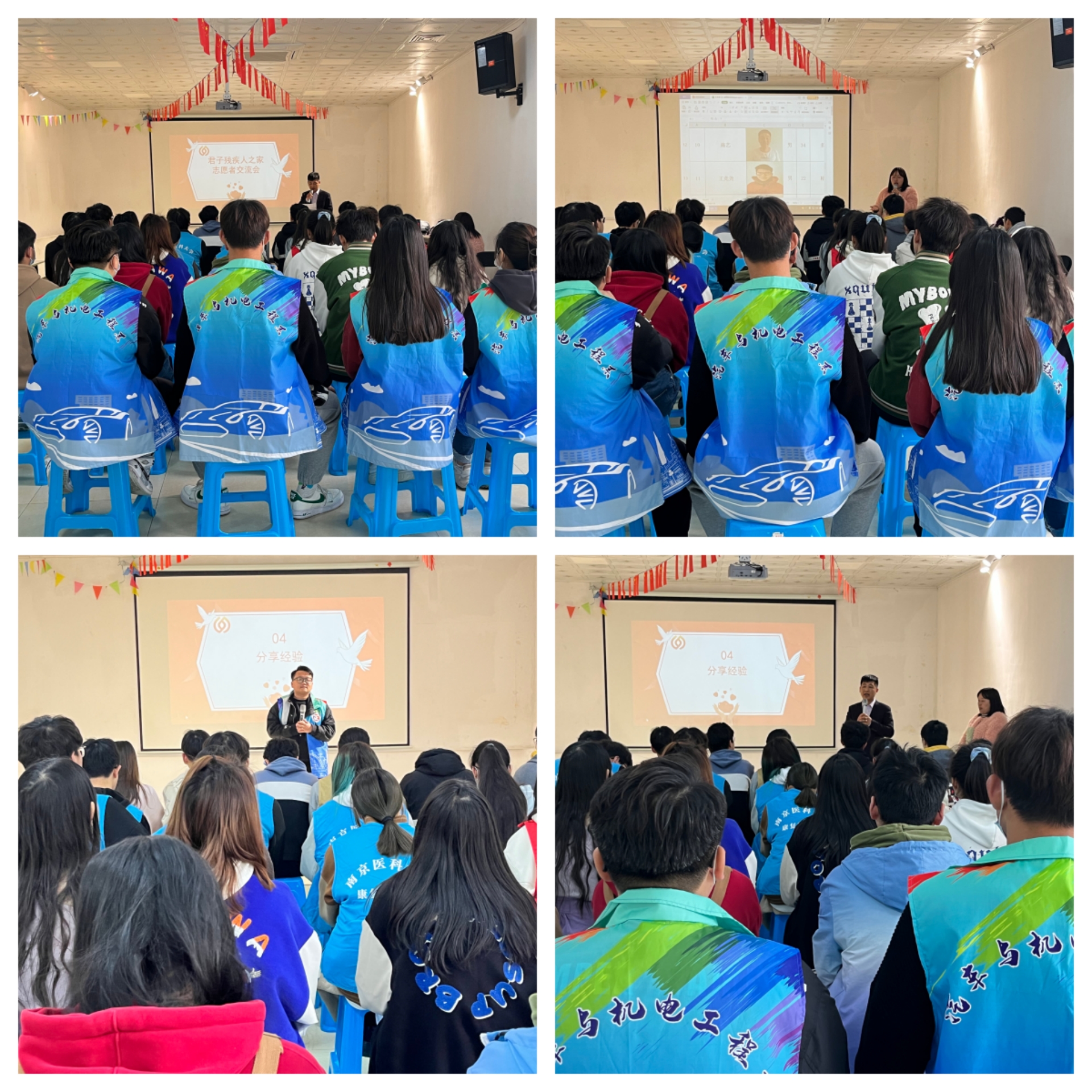 随后汽车与机电工程系的志愿者们上台向大家分享其在君子残疾人之家的志愿经历和感悟,他们提到,作为一名志愿者,不仅要具备素质和能力包括遵守职业道德规范,具备团队合作意识,拥有奉献精神,诚实守信,认真负责个人工作,确保心理与身体健康,最重要的是要有追求志愿服务内涵的精神。