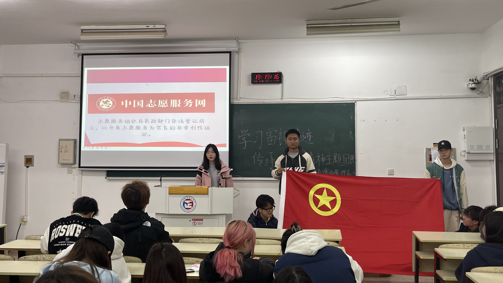 团课结束后,同学们积极响应要加入志愿者的大家庭,努力成为新时代雷锋精神的传播者与弘扬者,用实际行动践行“雷锋精神”,做到心中有祖国,有人民。雷锋精神凝聚着时代精华,是激励同学们前进的宝贵精神财富,将永远照亮同学们的青春岁月。