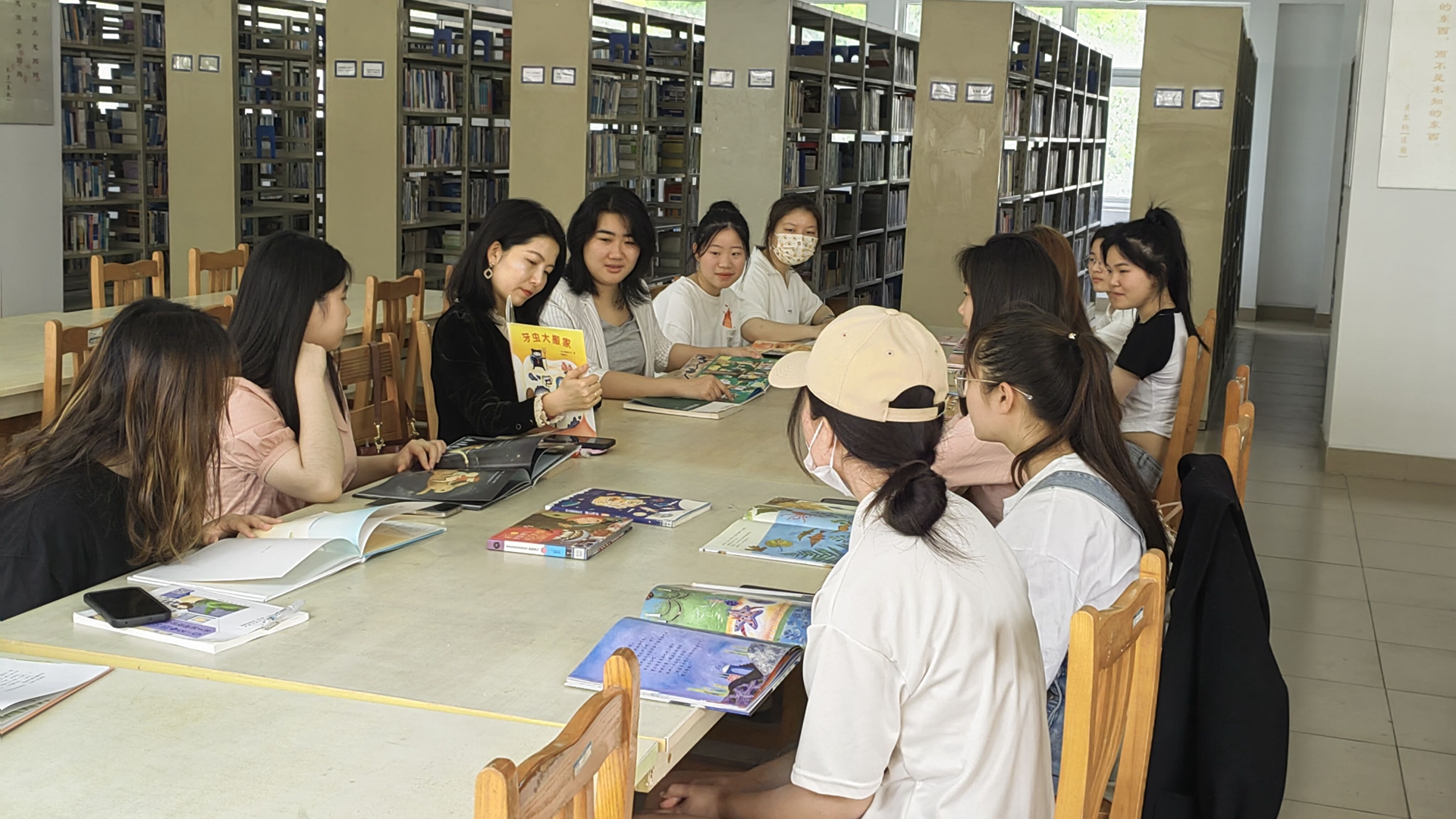 为贯彻落实习近平总书记在首届全民阅读大会贺信精神:“希望孩子们养成阅读习惯,快乐阅读,健康成长;希望全社会都参与到阅读中来,形成爱读书、读好书、善读书的浓厚氛围。”2023年4月19日,基础教育系教师、227104班主任孟馨开展“书香润童心 阅读伴成长”主题第二课堂活动,本次活动邀请王青云老师,旨在绘本阅读中帮助学生坚定职业理想、发挥绘本作用、掌握活动设计原则、提升专业综合素质。