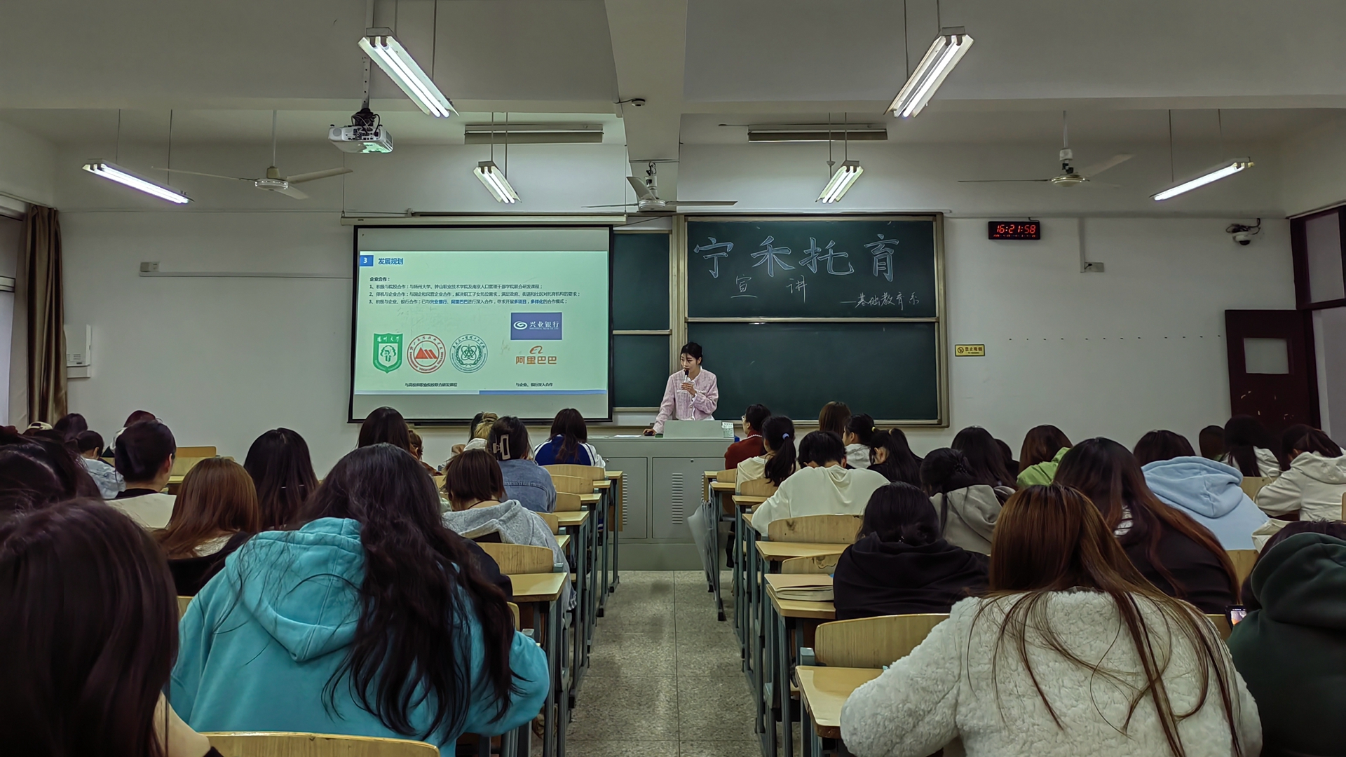 宁禾托育精心准备宣讲材料,向学生展示了行业现状、成人抖音、发展规划、福利待遇以及校企合作培养模式等相关信息。通过企业的宣讲,学生对企业有了更直观的了解,对岗位实习方向有了更明确的选择和计划。