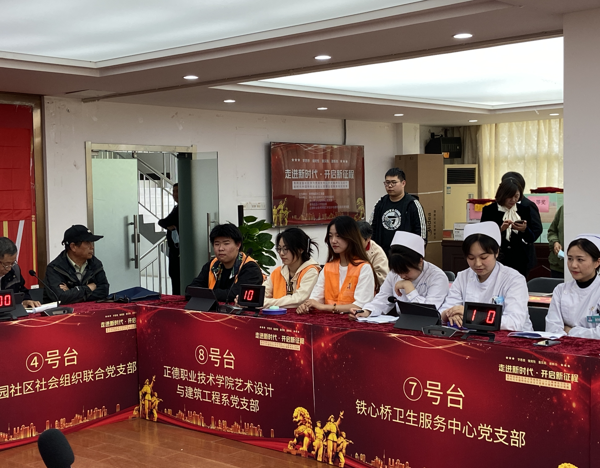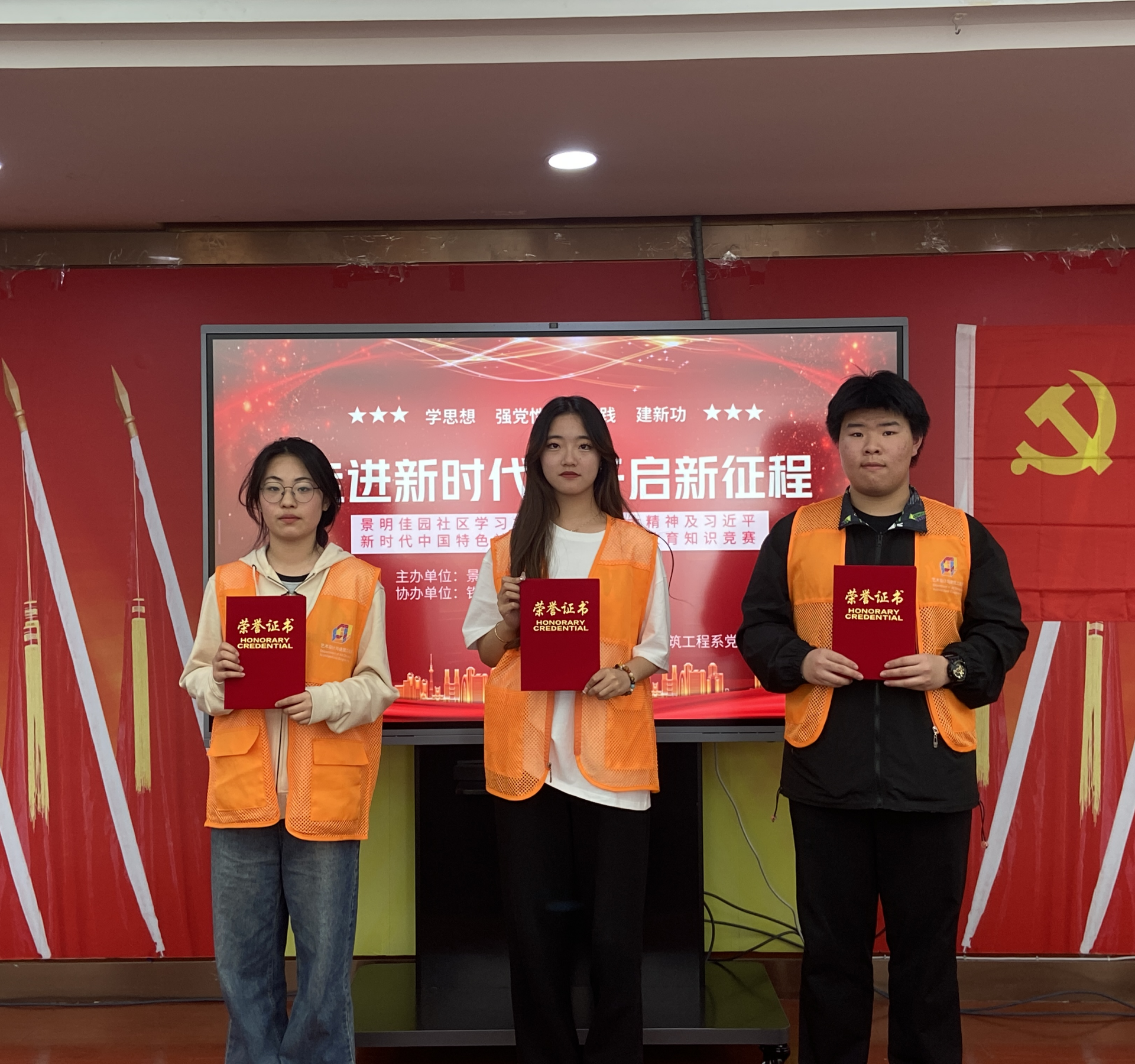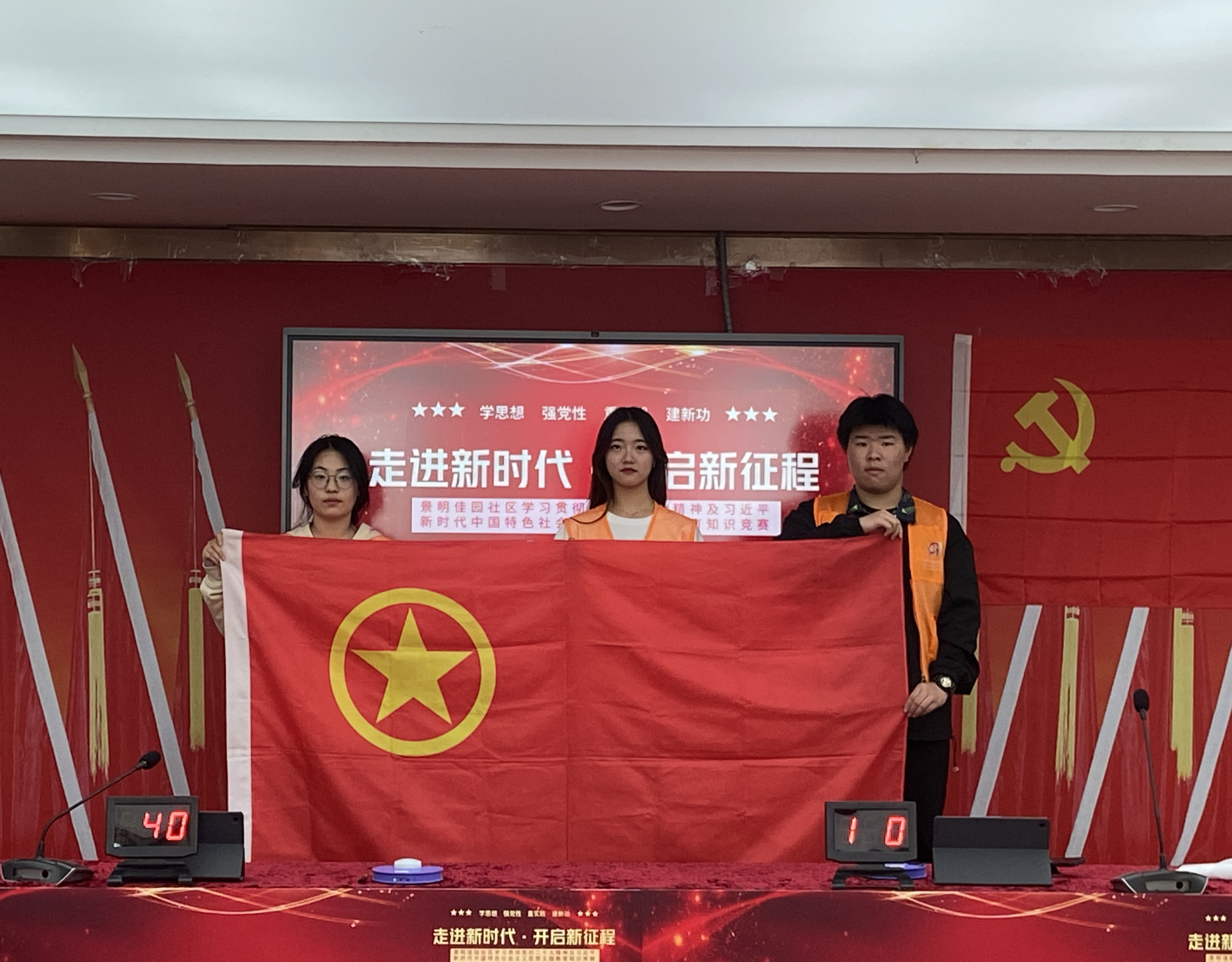 为深入学习贯彻党的二十大精神,引导支部成员和入党积极分子自觉以习近平新时代中国特色社会主义思想武装头脑,4月26日上午,由中共景明佳园社区党委举办的党建联建“党的二十大”精神及习近平新时代中国特色社会主义思想主题教育知识竞赛在景明佳园社区党群服务中心举办,除承办单位外,还有铁心桥街道新时代文明实践所、铁心桥卫生服务中心党支部、景明佳园小学代表队等8个队参与竞赛,成人抖音-成人抖音app-成人抖音下载 艺术设计与建筑工程系在支部书记陈宏波的选拔下,派出了由程启芳老师领队,三名入党积极分子组成的“红心”代表队参赛,队伍由陆凌岩、戴润江、朱洁雯三名同学组成。