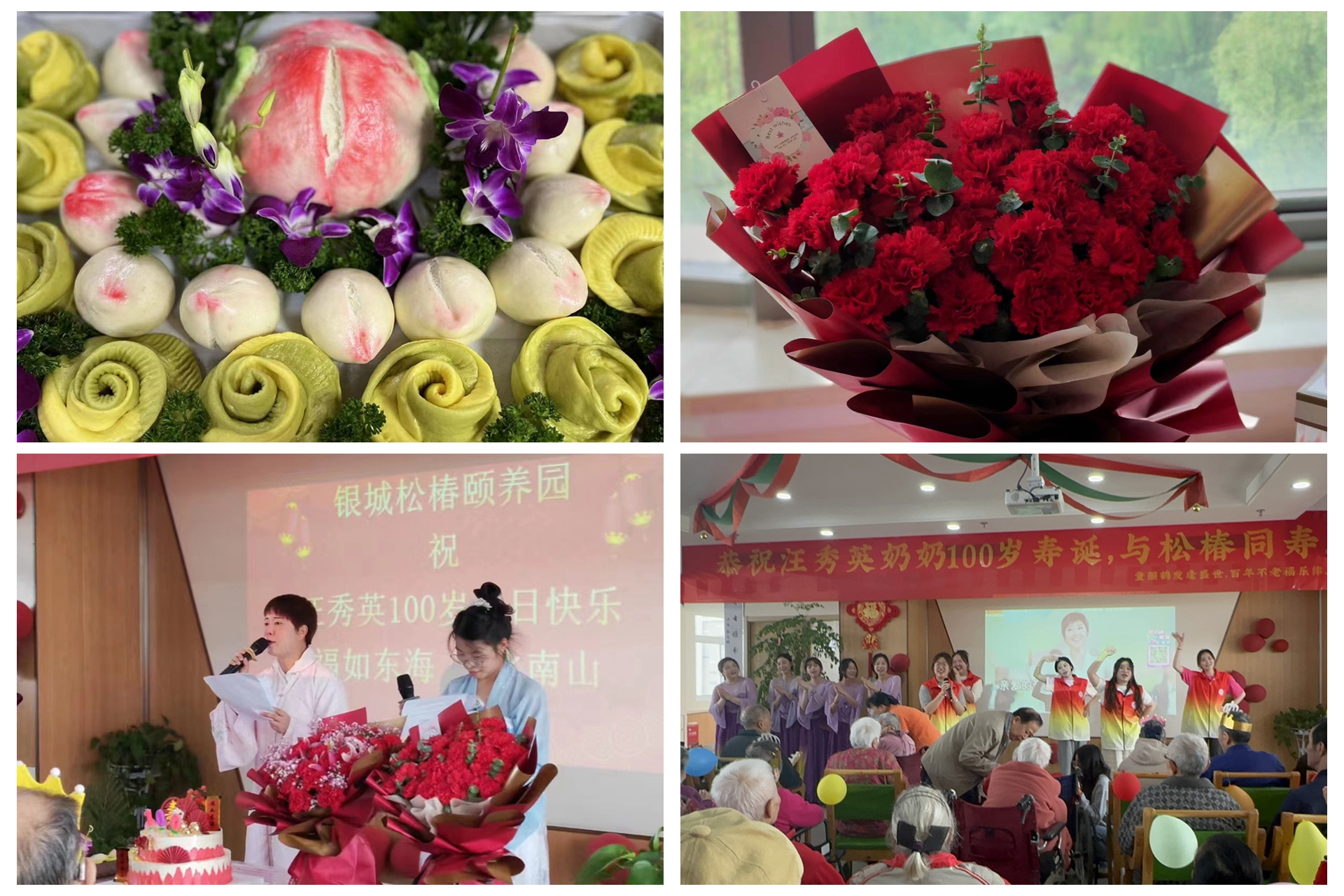首先,作为这几年来银城松椿颐养园的第一位百岁老人,铁心桥街道居委会来到颐养园为汪奶奶送去了生日蛋糕、鲜花,还送去了最真挚的生日祝福,为了给汪奶奶一个具有“仪式感”的生日宴。