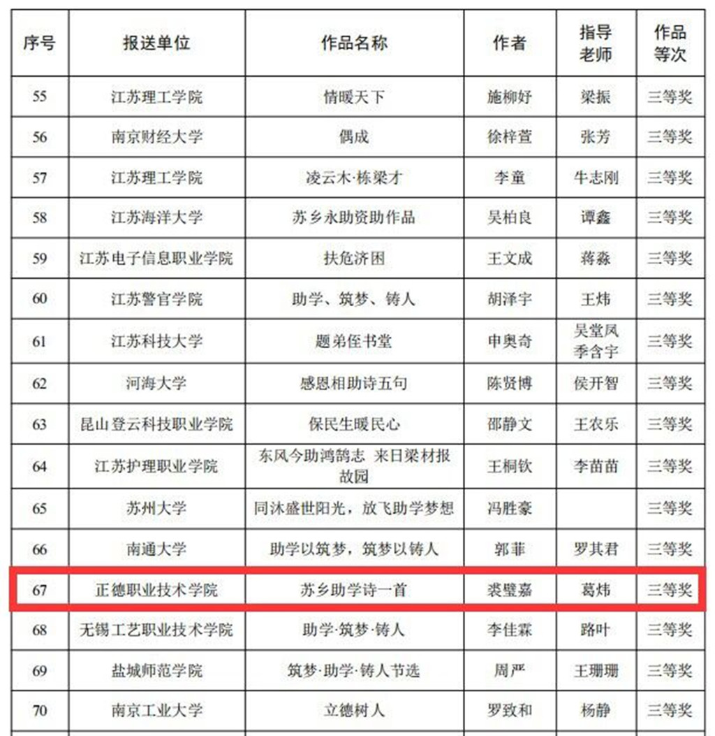5月19日,江苏省教育厅办公室印发《关于公布2022年“苏乡永助”资助育人主题活动结果的通知》,公布了“苏乡永助”系列资助育人主题活动的获奖名单。