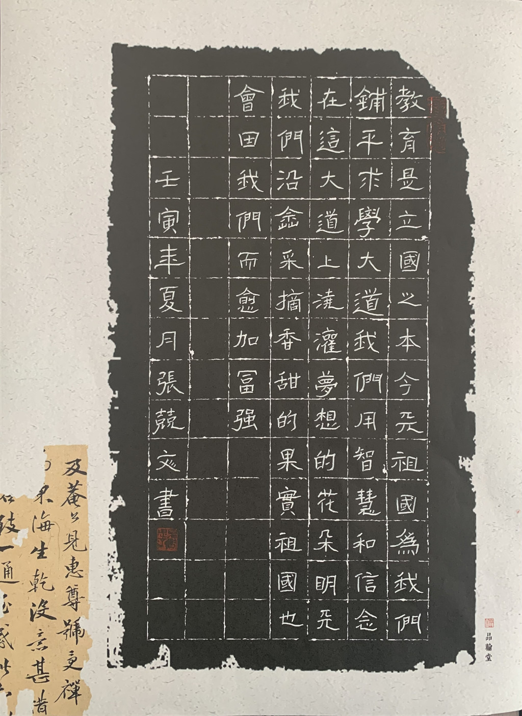 张竞文同学作品《苏乡永助 立德树人》获得硬笔书法一等奖