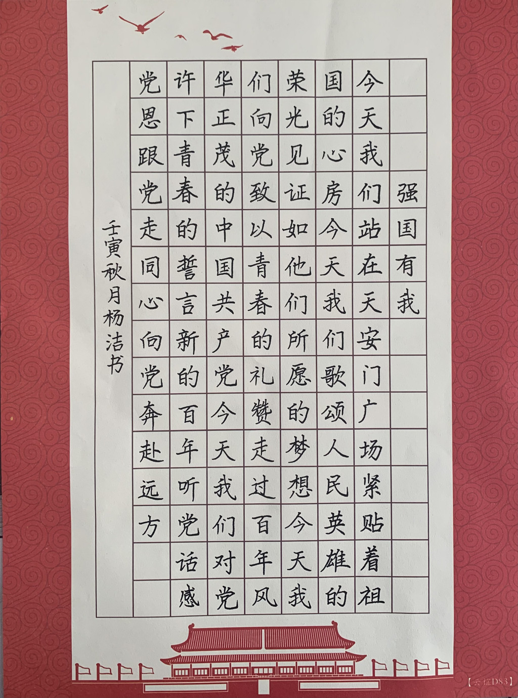 杨洁同学作品《强国有我》获得硬笔书法三等奖