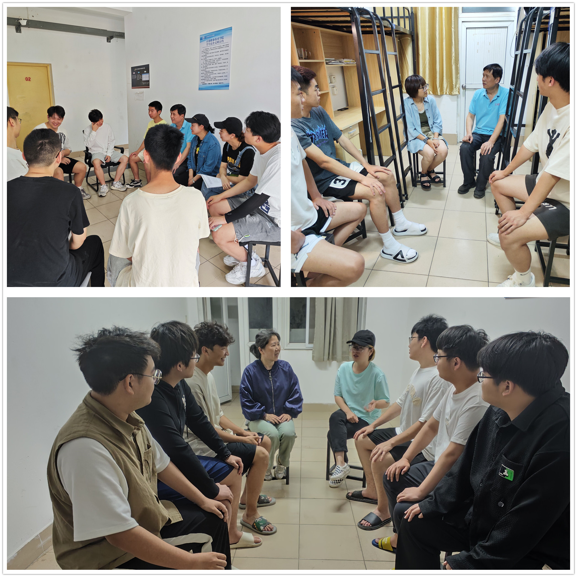 为树立学生模范宿舍典型,进一步发挥学生骨干的榜样带头作用,营造“讲政治、讲文明、讲学习、讲卫生”的良好宿舍氛围,电子与信息技术系辅导员李兰香、王雯、谢雅婷等联合宿舍管理员重点检查指导了宿舍内务整理情况,和同学们进行交流。辅导员号召同学们要时刻铭记身份,将优秀学生的文明涵养体现在学习和生活细节中,要求大家进一步树牢文明意识,充分发挥学生骨干的榜样带头作用,真正使学生宿舍成为健康文明向上的学习生活场所。
