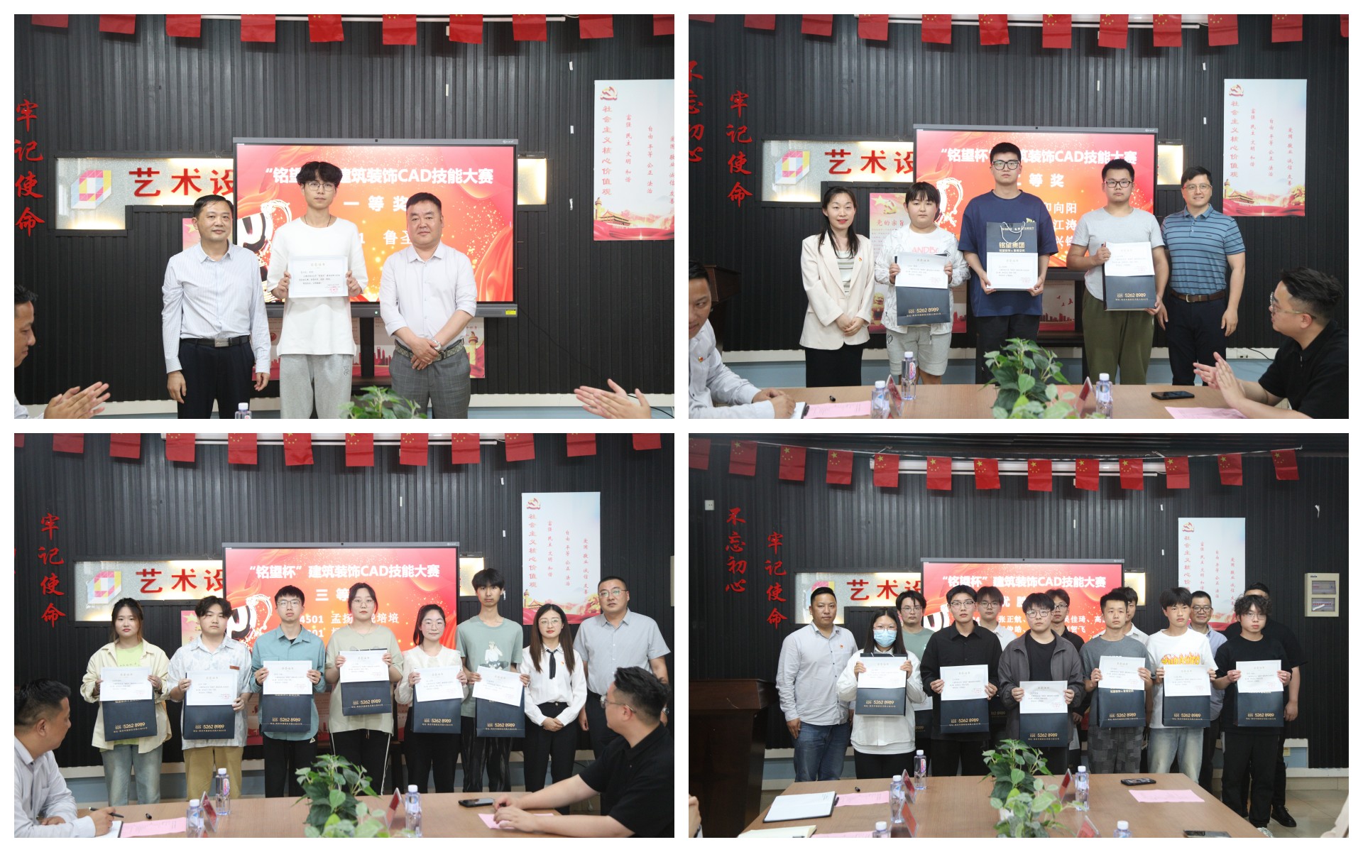 接着由冯显静老师主持了隆重的颁奖仪式,校企双方领导为获奖学生颁发了荣誉证书和铭望装饰赞助的奖品和特制纪念品。现场气氛非常热烈,获奖学生纷纷表示感谢铭望装饰的大力支持,深刻理解了以赛促学的作用,今后要认真钻研专业技能,提高岗位能力。