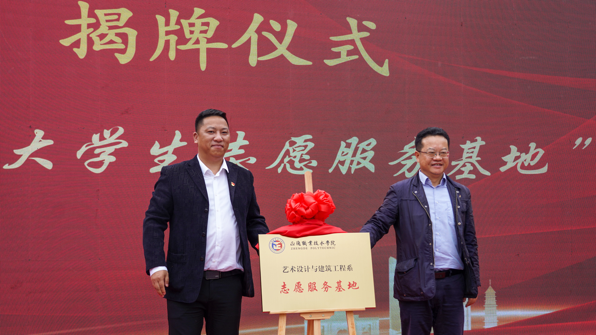 艺术设计与建筑工程系党支部与景明佳园社区“大学生志愿服务基地”签约揭牌仪式在景明佳园社区举办。艺术设计与建筑工程系党支部书记、副主任陈宏波,辅导员程启芳、杨阳,景明佳园社区党委书记孙法春,以及社区合作十五家单位参加了此次揭牌仪式。