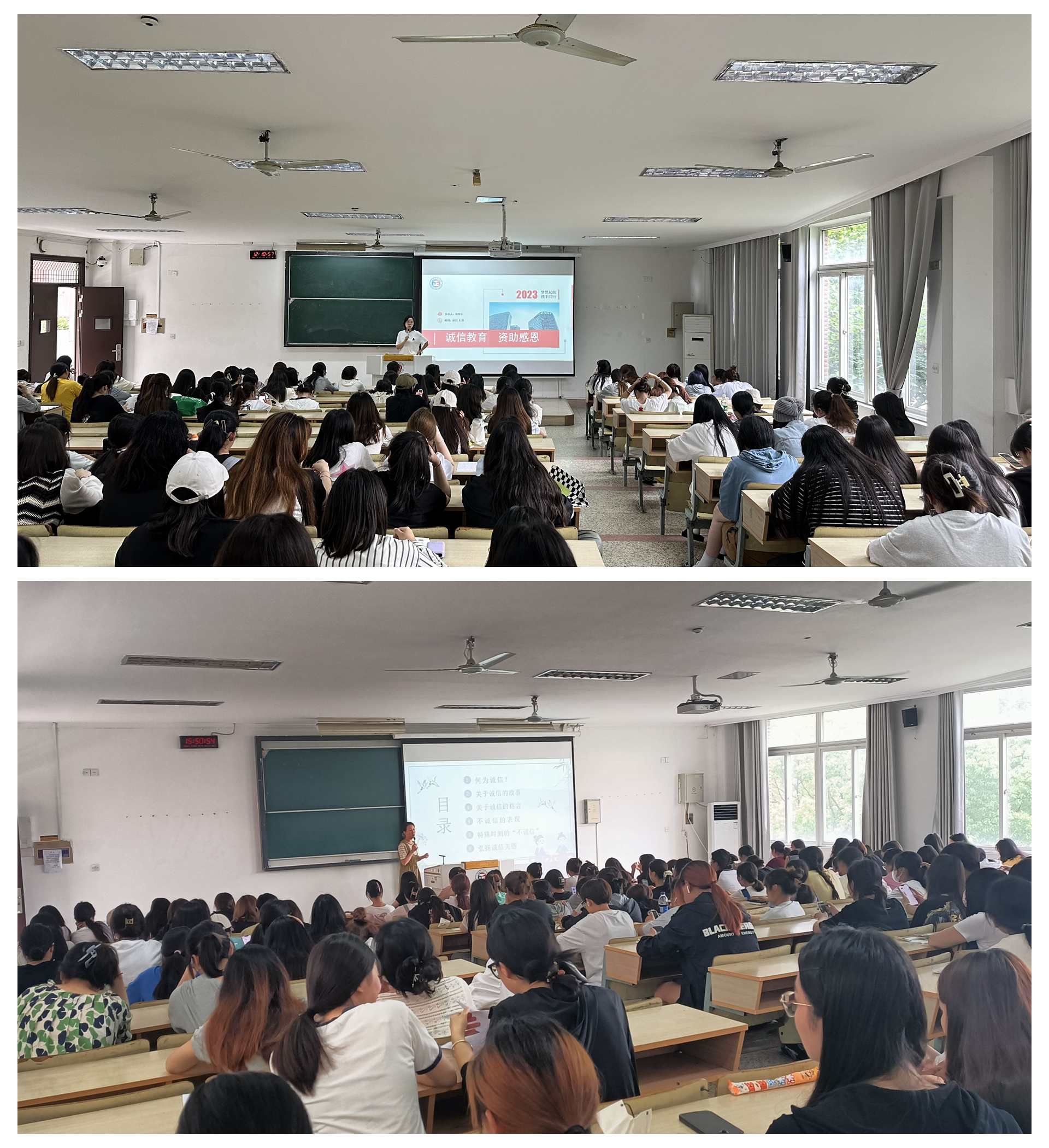活动期间,基础教育系辅导员们陆续开展了诚信教育主题班会。针对大一、二年级的同学,重点开展“诚信治学、诚信考试”的教育,强调诚信考试的重要性并列举了当代大学生失信考试的案例,阐明失信考试的危害,必须严守考试纪律、诚信考试,自觉抵制考试中的各种不良风气,并要求同学之间要互相督促,弘扬正气。对于毕业年级学生,重点开展“诚信还贷、诚信就业”的教育,教导同学们在就业过程中要增强法律意识、诚信守约、正当竞争,并嘱托有生源地贷款的毕业生按时履约。