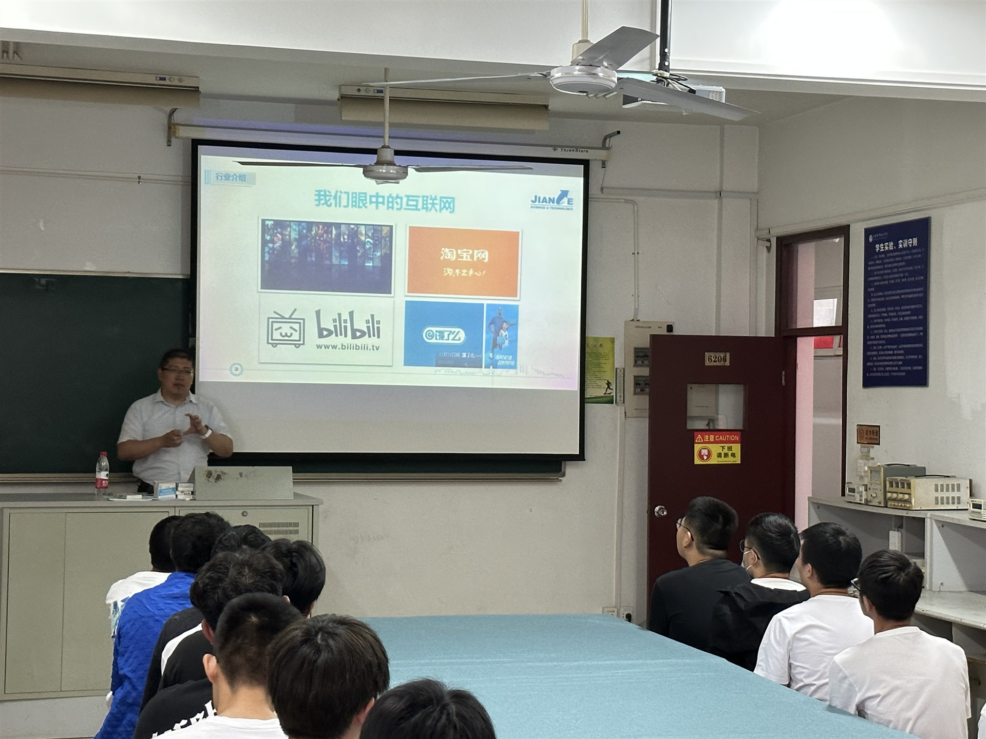 为进一步帮助青年学子树立远大志向,激发学习动力,培养奋斗精神,6月1日下午,电子与信息技术系邀请南京建策科技股份有限公司技术总监、CISCO专家级金牌讲师万峰,在6206教室开展“行业先锋说”青年成长沙龙活动,计算机网络技术专业负责人张韬主持,2022级计算机相关专业30余名学生参加。