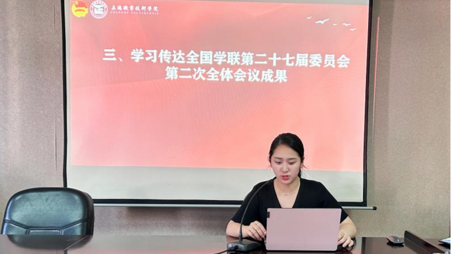 接着,团总支书记倪冰慧作总结发言。她首先感谢了同学们的辛苦付出,对学生会近期的工作成果给予了肯定,并激励同学们要继续强化责任意识,起好带头作用,促进自我提升,加强学生会内部建设,打造系部品牌,为经管系发展贡献力量。最后,她带领全体学生干部以《在全国学联第二十七届委员会第二次全体会议上的工作报告》等为学习内容,就会议工作报告和会议通过的决议进行学习解读,深入领悟会议精神,强化理论水平,把握时代主题,牢记服务宗旨。