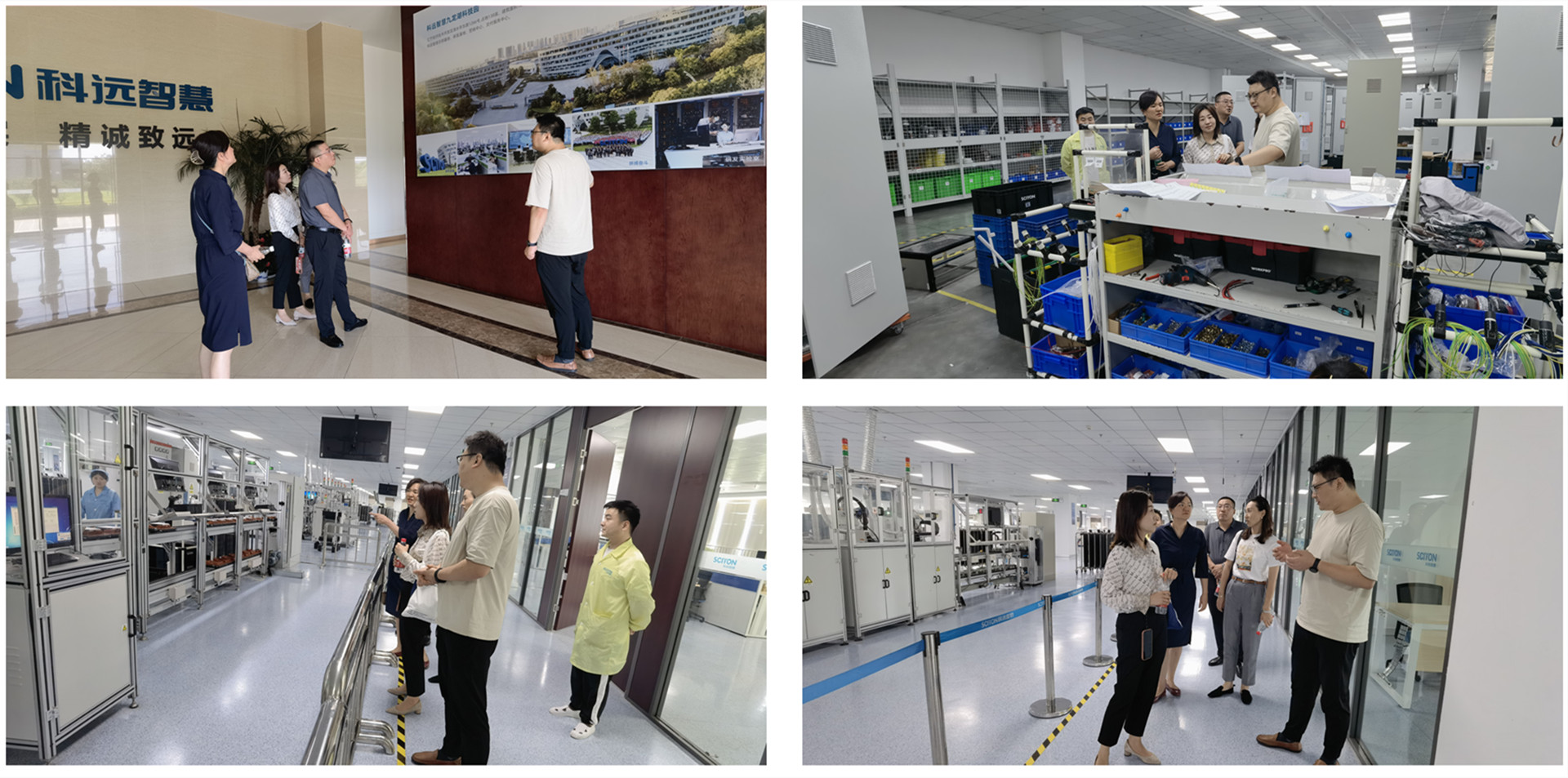 科远智慧生产中心总经理乔熹热情接待了陆松一行,电子产品部生产工程师、成人抖音 电子与信息技术系2016届毕业生袁伟杰陪同接待。乔熹向大家介绍了科远智慧的设立、产品、市场、员工等企业基本情况,带领大家依次参观了电子制造车间(南京市首批智能工厂示范车间)、机柜制造车间和执行器机加工车间,详细了解企业创新发展历程以及生产装备自动化、生产过程智能化、生产调度智慧化等情况。