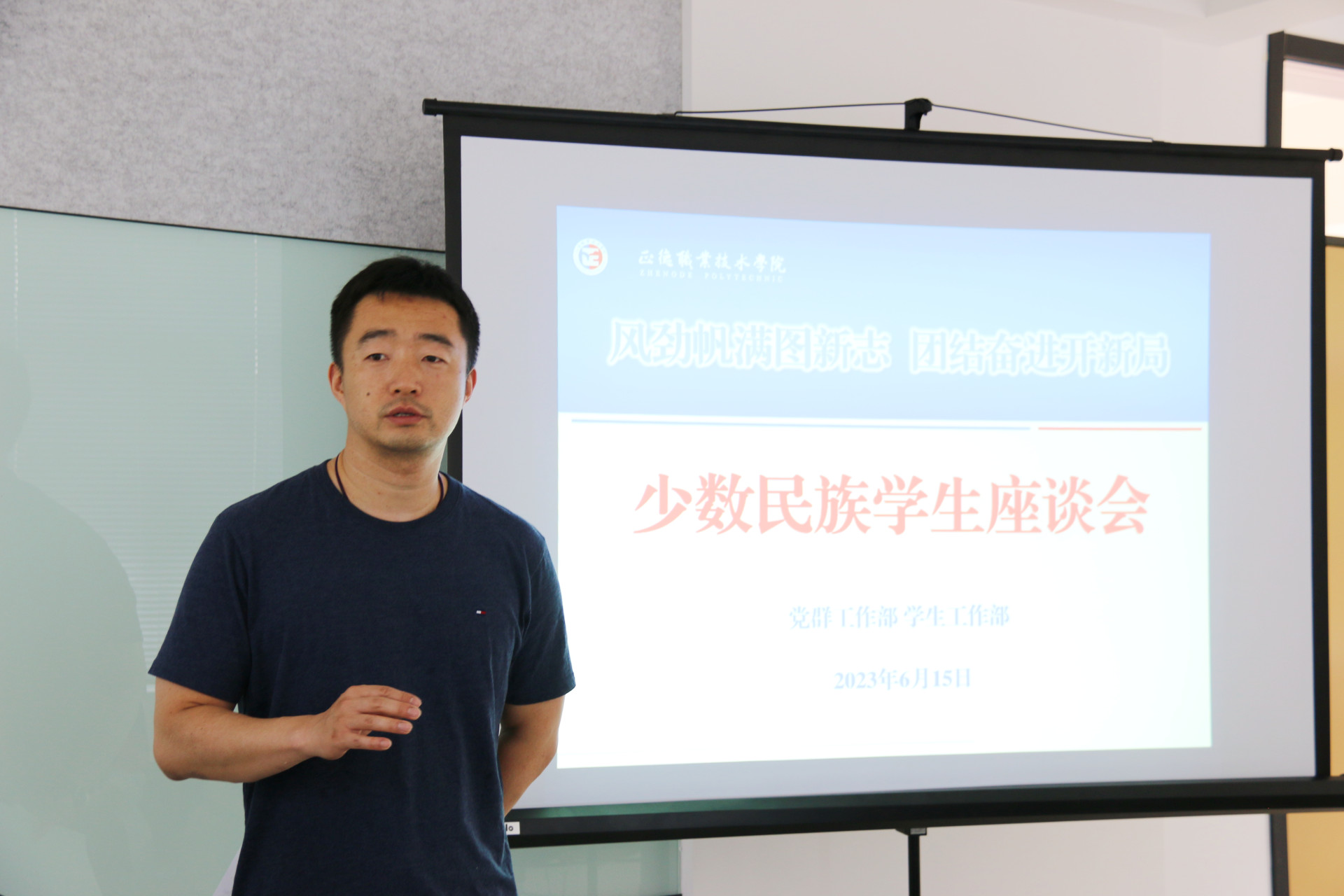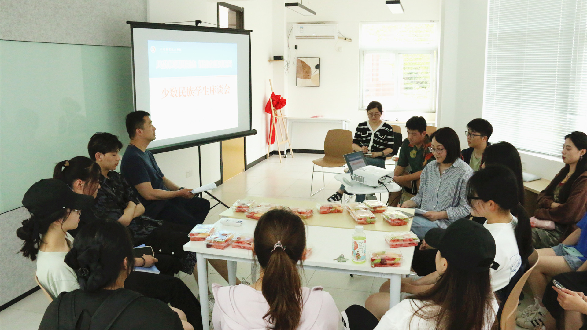 为深入学习贯彻习近平总书记关于民族团结进步工作的重要精神指示,进一步提升少数民族学生教育、管理和服务工作,铸牢中华民族共同体意识,促进各民族学生交往交流交融,6月15日下午,成人抖音 在“一站式”学生社区召开了少数民族学生座谈会,党群工作部副部长周慧、相关老师以及来自7个民族的16名少数民族学生代表参加了本次座谈会,座谈会由学生处副处长毛茂主持。