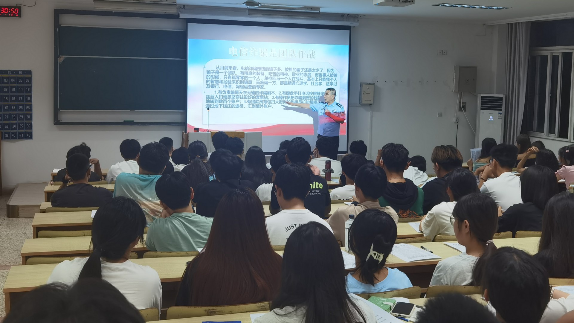 9月11日晚,学院保卫处、学生处牵头,邀请江宁开发区派出所娄军来警官走进成人抖音 ,为2023级新生开展开学第一课“反诈宣讲”。民用航空系作为本次活动第一站,全体新生热情高涨,课堂氛围活跃。