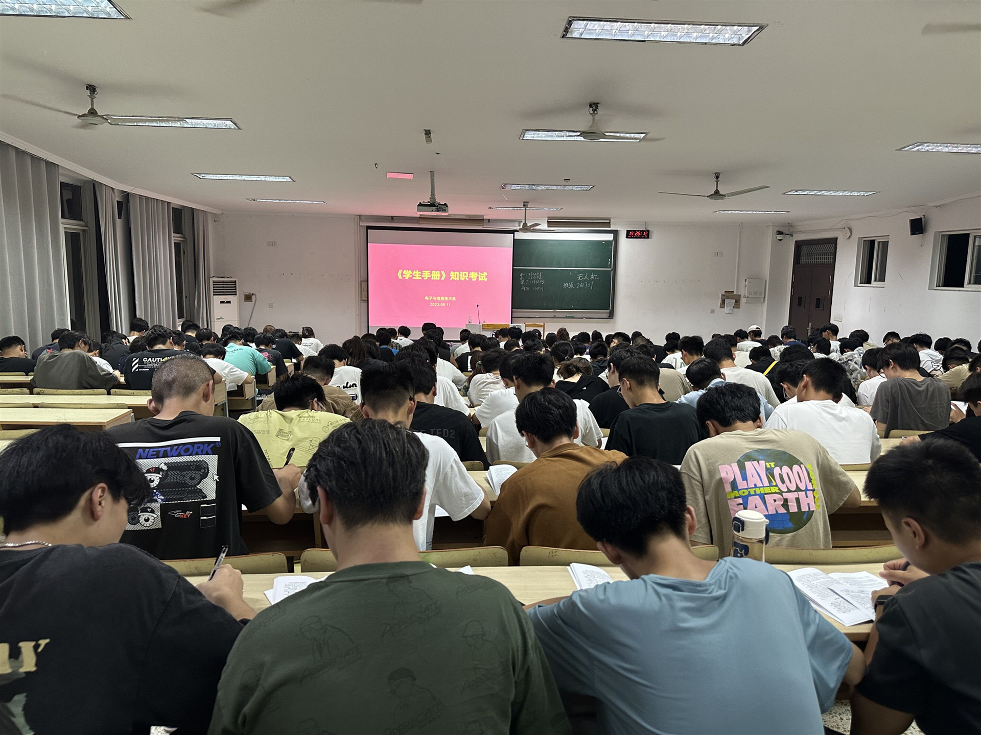 2023年9月11日晚,电子与信息技术系组织2023级新生进行《学生手册》考试,旨在帮助新生尽快适应大学生活、了解学校规章制度,巩固学生的入学教育。
