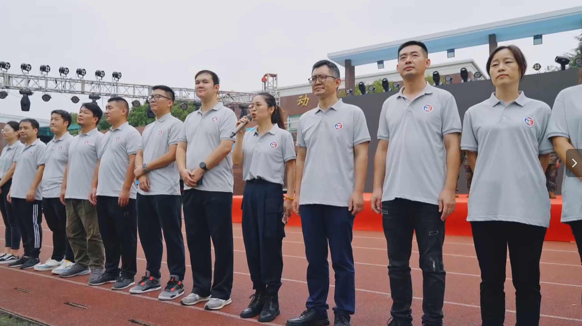 27日中午,结束了一上午辛苦军训的23级全体新生们再次集合,排列出设计好的新队形,全系42位老师们全部来到活动现场与同们站在一起。