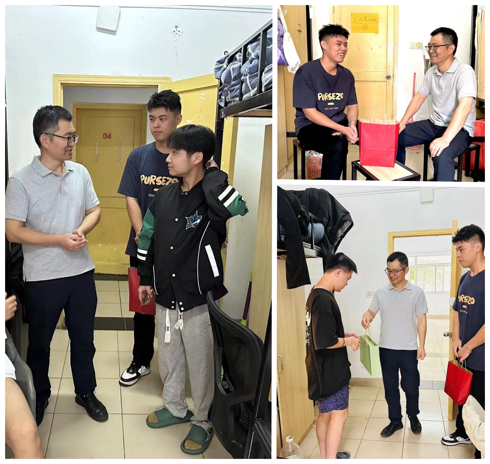 9月28-29日,周卫、杨春娟以及辅导员们首先在南区一站式社区活动室里集中看望了大一的留校学生,与大家亲切交谈,了解学生在学校的适应情况,鼓励同学们要以积极的心态和良好的精神面貌尽快适应校园生活,希望同学们利用视频、电话等形式与家人联系并送上节日问候,还提醒同学们在外出时要注意防范诈骗、出行安全及身体健康等。同学们向领导和老师们的关心表示感谢,畅谈入学体验和对未来的规划等。然后来到北区的宿舍看望了大二的留校同学,辅导员们把一份份充满爱心的月饼送到260多位学生手中,通过这份礼物,让他们感受到了节日的气氛,以及来自学校和老师们的温暖关爱。