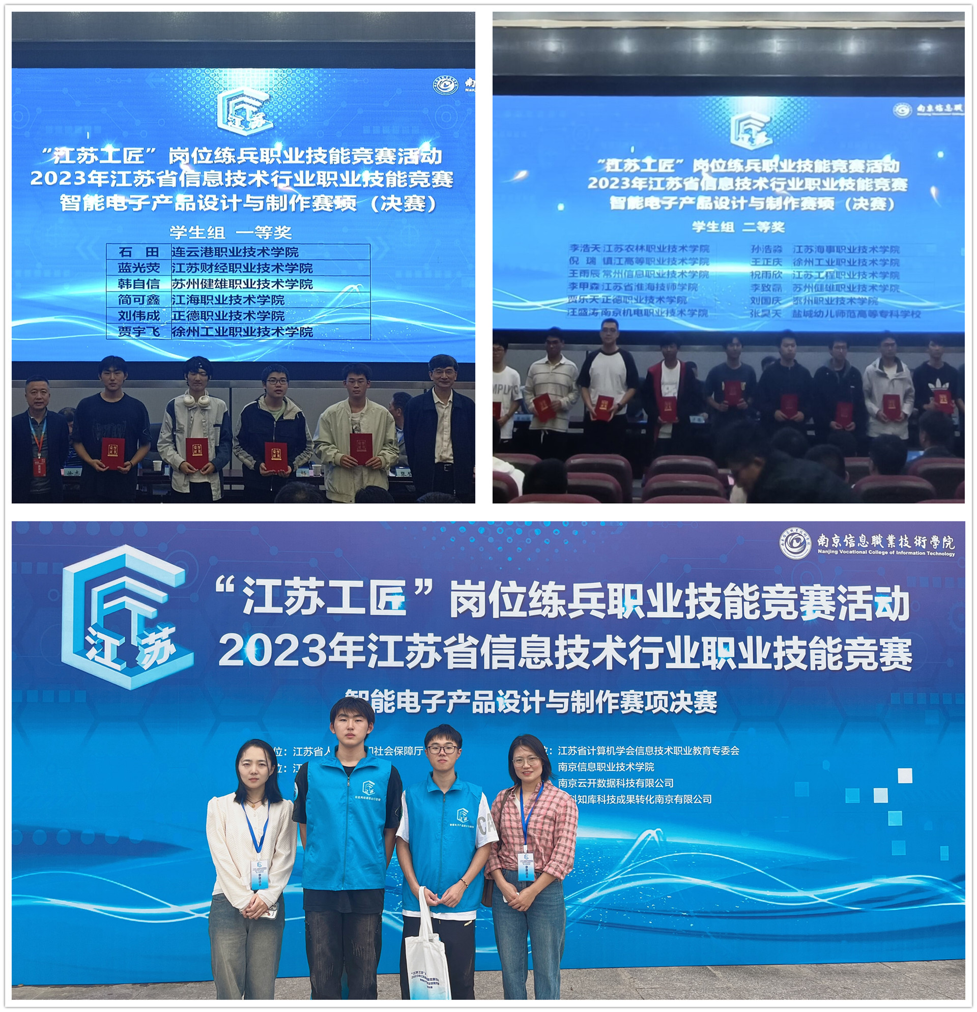 2023年11月4日,“江苏工匠”岗位练兵职业技能竞赛2023年江苏省智能电子产品设计与制作职业技能竞赛省赛决赛在南京信息职业技术学院举行,成人抖音 电子与信息技术系电子信息工程技术专业学生刘伟成、贾乐天在学生组比赛项目中分别荣获一等奖、二等奖;电子与信息技术系专任教师白延敏、李倩教师组比赛项目中荣获二等奖。