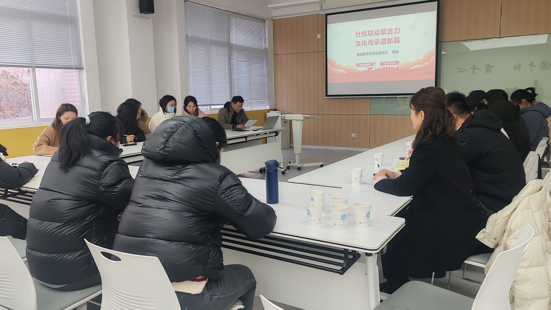 2023年12月21日,在翠屏社区党委书记尚征瑞、副书记芮希带领下,社区三个党支部书记一同来院与基础教育系党支部开展联学共建活动,系党支部全体党员及入党积极分子参加了活动。
