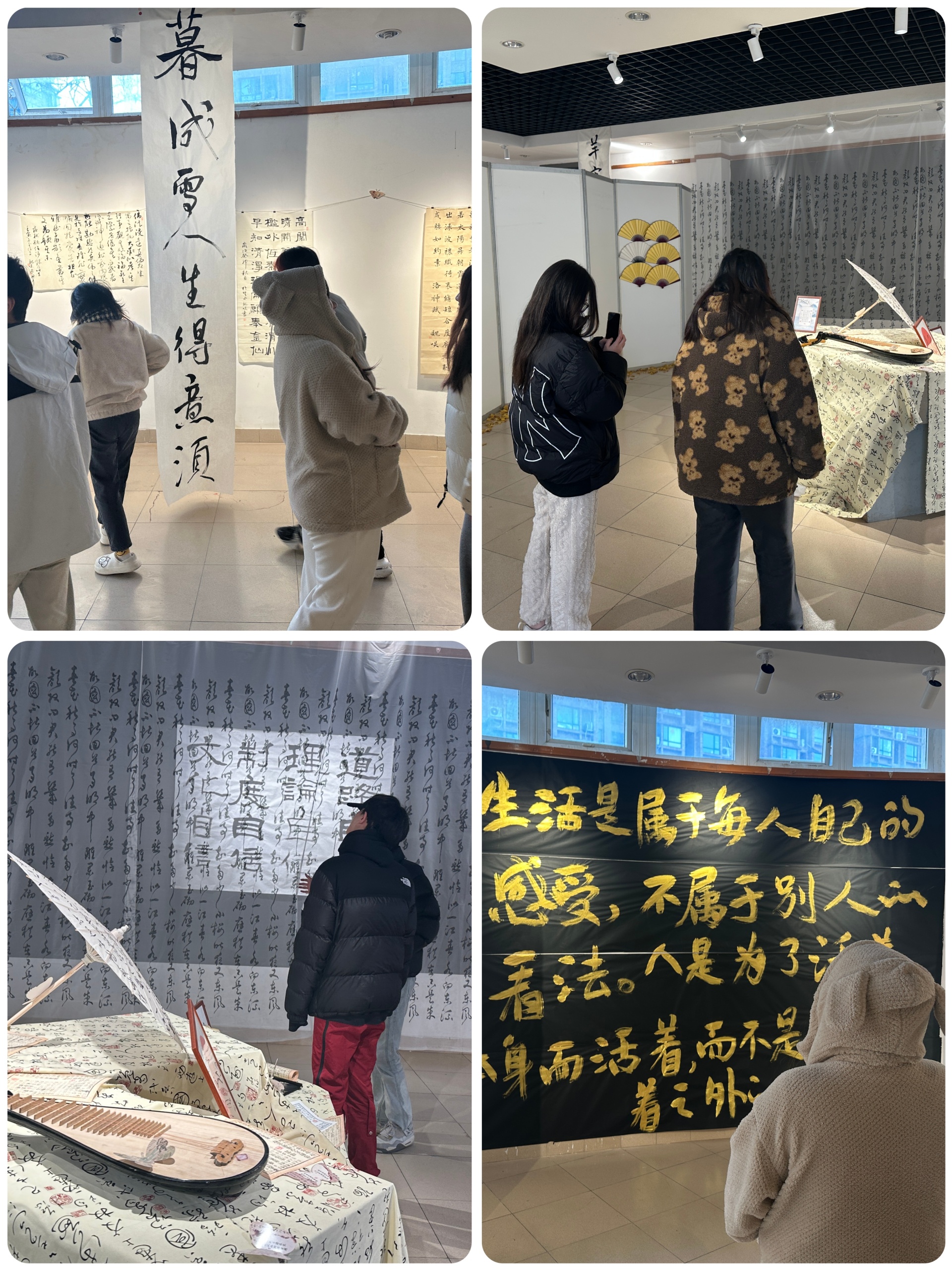 此次的作品展也吸引了广大同学前来参观学习,前来参观的大一同学说道:“学姐学长们的每一幅作品都展现了他们独特的风格和深厚的功底,我被作品中所蕴含的情感深深吸引,感受到他们对中国传统书法文化的浓烈热爱之情,真的很钦佩我们身边的同学中有这么厉害的书法高手”。