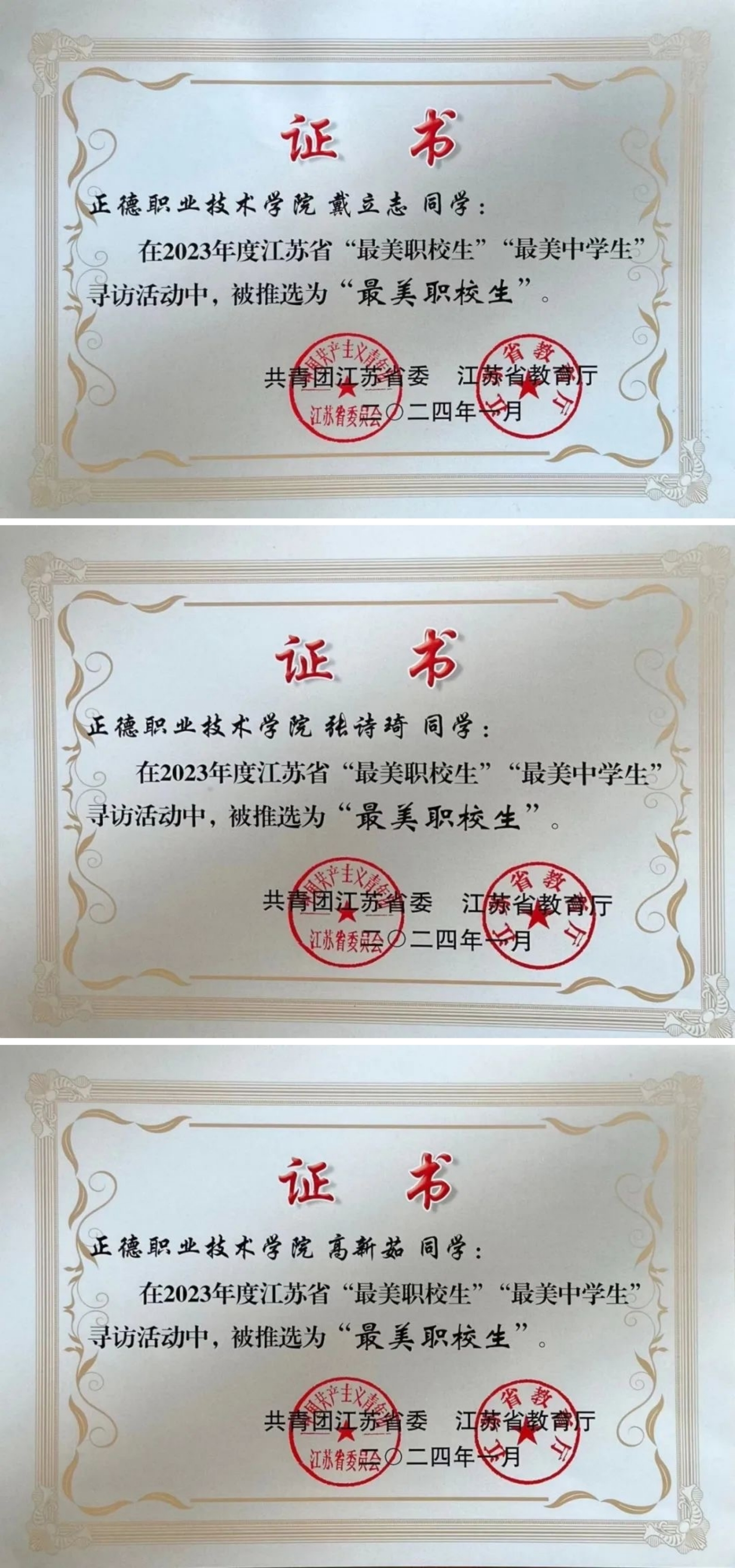 为深入学习贯彻习近平新时代中国特色社会主义思想,紧紧围绕学院立德树人根本任务,发挥先进典型的示范引领作用,引导广大青年学生坚定理想信念,站稳人民立场,练就过硬本领,投身强国伟业,团省委、省教育厅于2023年6月联合下发了《关于开展2023年度全省“最美职校生”“最美中学生”寻访活动的通知》(团苏委电【2023】35号)。经院团委推荐,团省委与省教育厅审核,成人抖音 电子与信息技术系戴立志、汽车与机电工程系张诗琦、基础教育系高新茹三名同学获评2023年江苏省“最美职校生”。