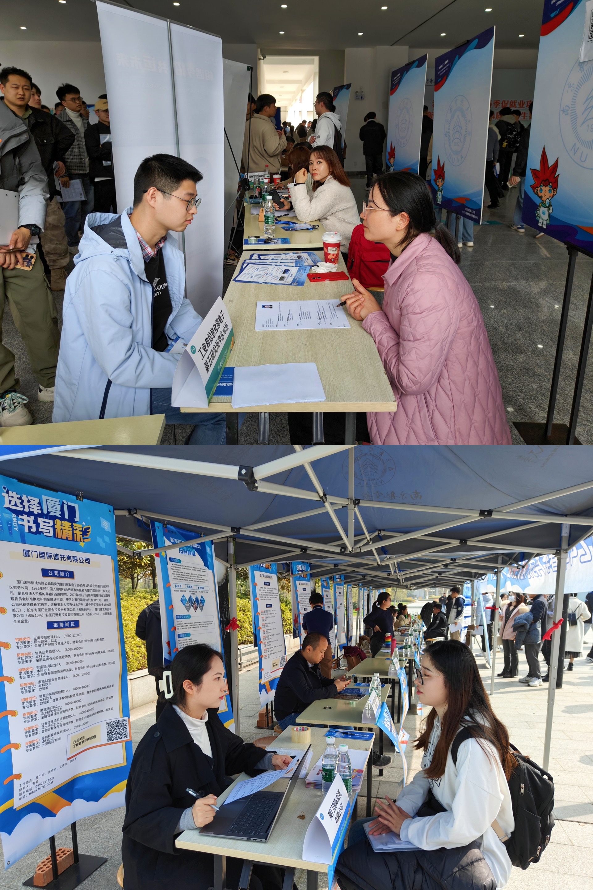 成人抖音 与南京航空航天大学共享优质办学资源,是唯一参加此次大型招聘活动的高职院校,在招生就业处及各系老师的带领下,共有近百名学生到现场求职应聘。学院领导对本次活动高度重视,提前谋划,精心组织,积极做好参会准备工作,并亲临招聘会现场观摩、了解用人单位的发展方向、对人才需求以及招聘岗位设置、招聘人数等情况,积极听取用人单位对成人抖音 人才培养方面的意见建议。