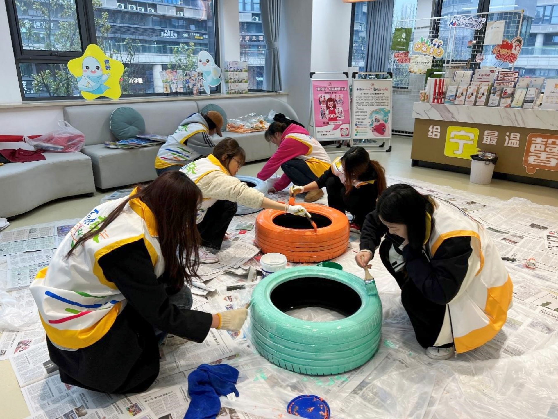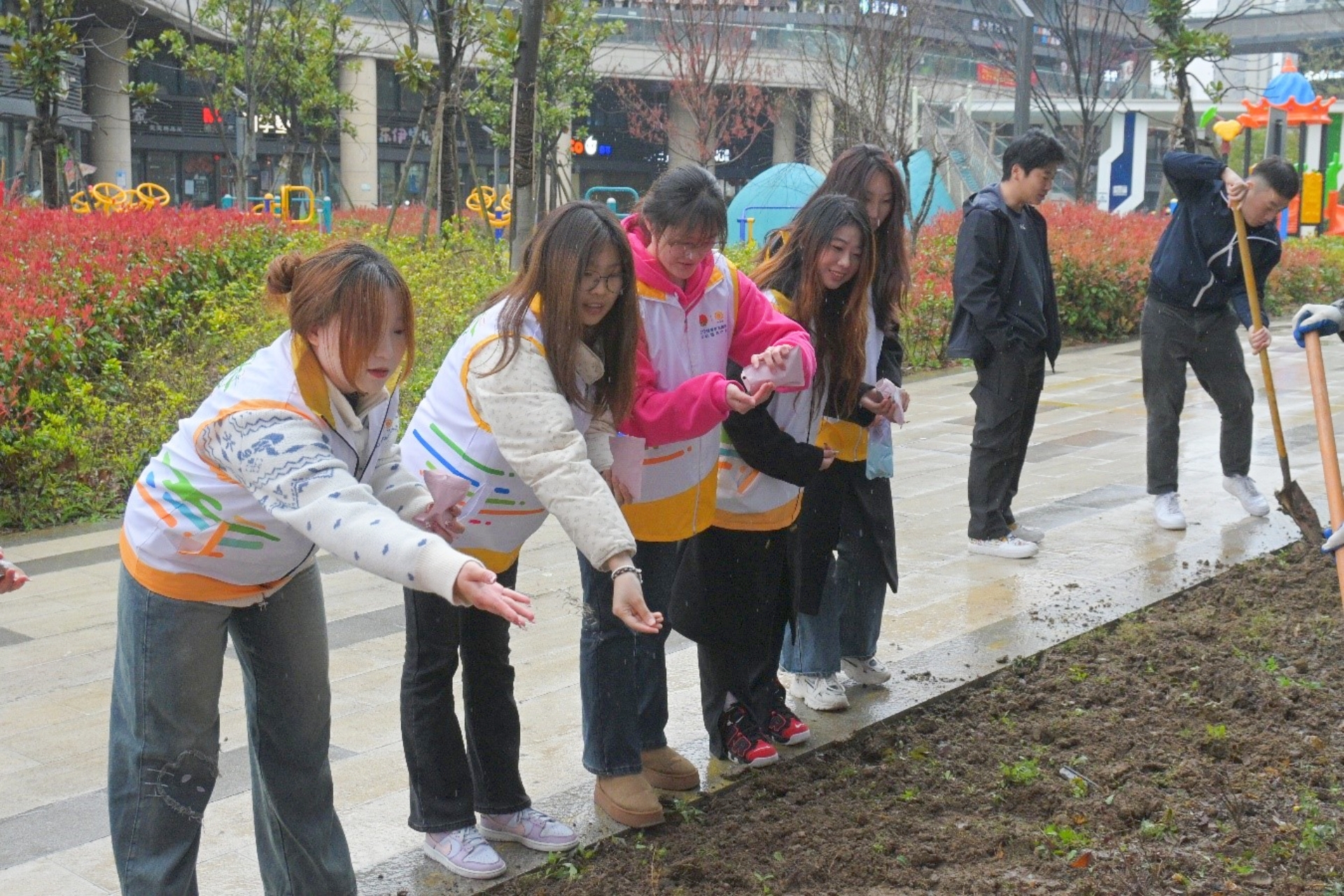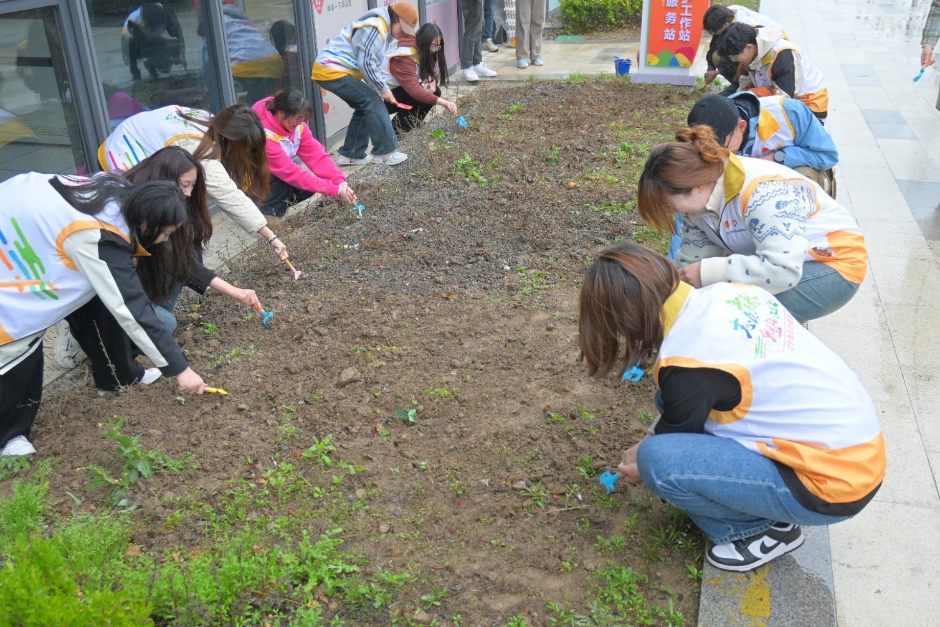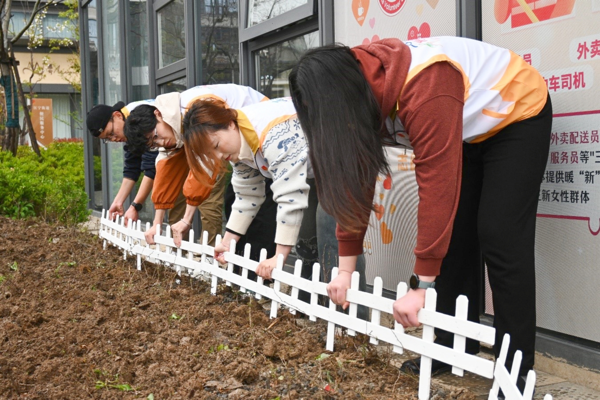 做一次志愿服务。宣讲过后,志愿者们满腔热情,投身到流动团员服务驿站门口花园的改造工作中。他们分工合作,默契配合,有的细心地在草地上播撒花籽和菜籽,期待着不久的将来,这片草地能够绽放出五彩斑斓的花朵和绿油油的蔬菜;有的则忙着加装美化栅栏,他们用心挑选材料,精心制作,力求让栅栏既美观又实用;还有的志愿者发挥创意,进行DIY轮胎装饰,他们将废旧轮胎变废为宝,经过一番巧手改造,变成了别具一格的花园装饰。经过大家的共同努力,花园焕然一新,变得更加美丽和温馨。志愿者们用自己的实际行动为社区环境的美化贡献了一份力量。