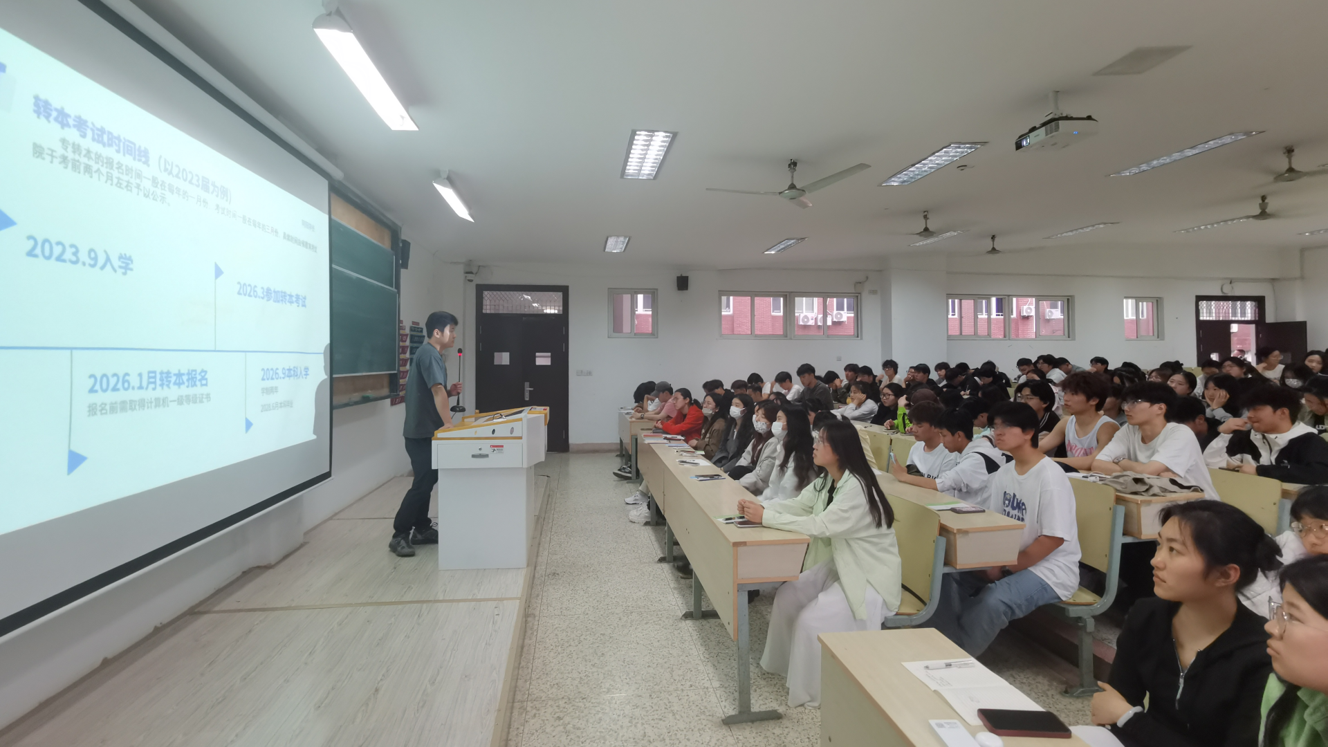 首先,在转本经历方面。他分享不仅需要努力学习、刻苦钻研,还需要给自己制定详细的复习计划,认真严格的执行。尤其是重点课程,同学们应该课前提前预习;上课时,认真听讲,不懂的地方及时向老师请教;课下利用一些手机app,再进一步巩固学习。同时为同学们厘清必考项目及各类考试的时间线,分享了自己进行时间管理的经验。生活方面,他还积极勤工俭学,发现自己的兴趣点,培养沟通技能,积累实践经验。在设定考研目标后,他对自己有清醒的定位,无论结果如何他都全力以赴,不留遗憾。