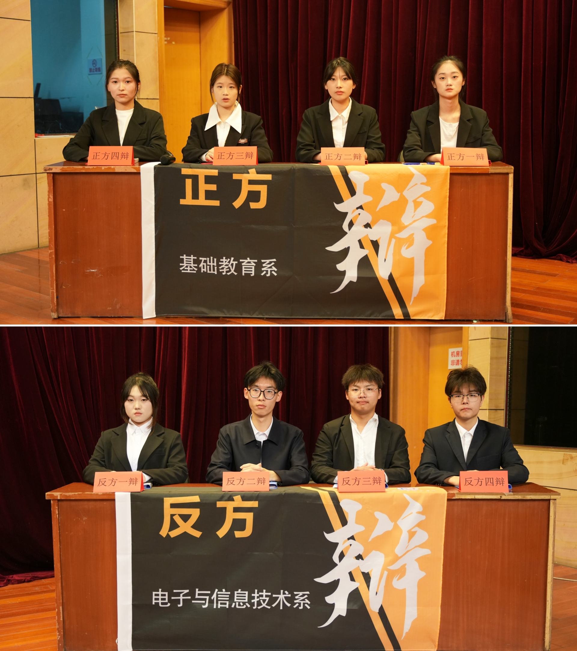 本届辩论赛分初赛、复赛、决赛,实行淘汰赛制,共六支队伍参加。辩题紧扣热点话题和成人抖音 学生思政工作重点,各系学生同场论辩、同台竞技,思想碰撞,火花四溢。经过前期在一站式社区进行的比赛,电子与信息技术系和基础教育系两支队伍的优秀辩手们脱颖而出,在决赛的舞台上进行了一场激烈的交锋。双方辩手针对辩题:“高职学生培养工匠精神,匠心修炼更重要还是匠行实践更重要”展开激烈辩论。双方辩手围绕论点、引经据典、妙语连珠、旁征博引,现场气氛热烈而紧张。双方辩手势均力敌,现场氛围热烈高涨。