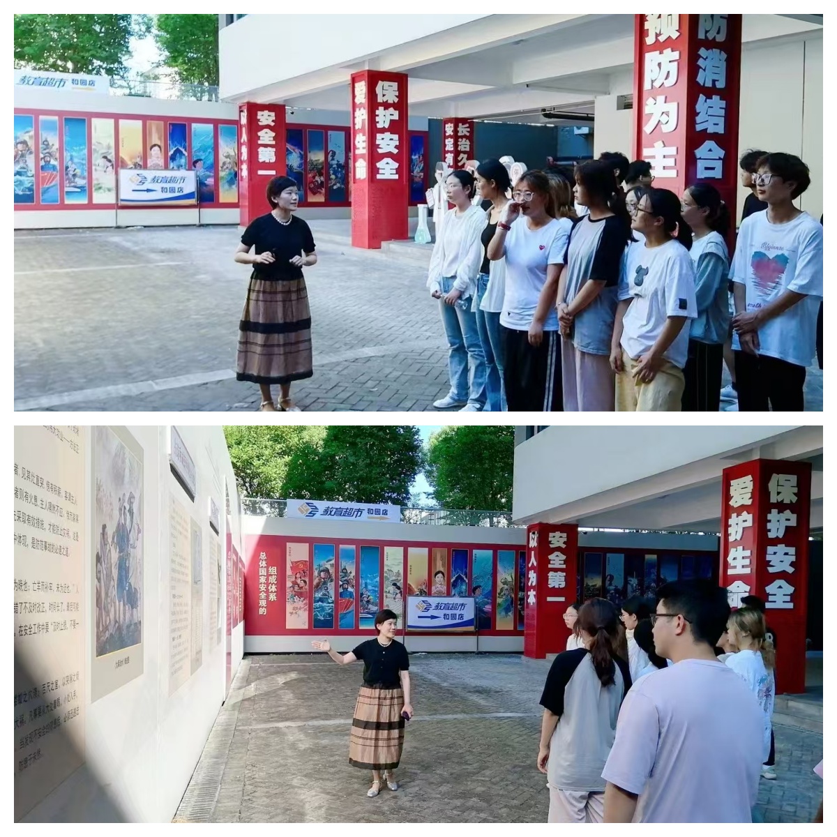 在户外安全文化主题区,李颖通过介绍海报、展板、标识标牌、雕刻、雕塑等为同学们介绍了安全文化的起源与演进、传统安全文化及总体国家安全观,重点讲解了为什么坚持总体国家安全观,以及总体国家安全观强调的“大安全”理念,涵盖政治、军事、国土、经济、金融、文化、社会、科技、网络、粮食、生态、资源、核、海外利益、太空、深海、极地、生物、人工智能、数据等二十个领域。