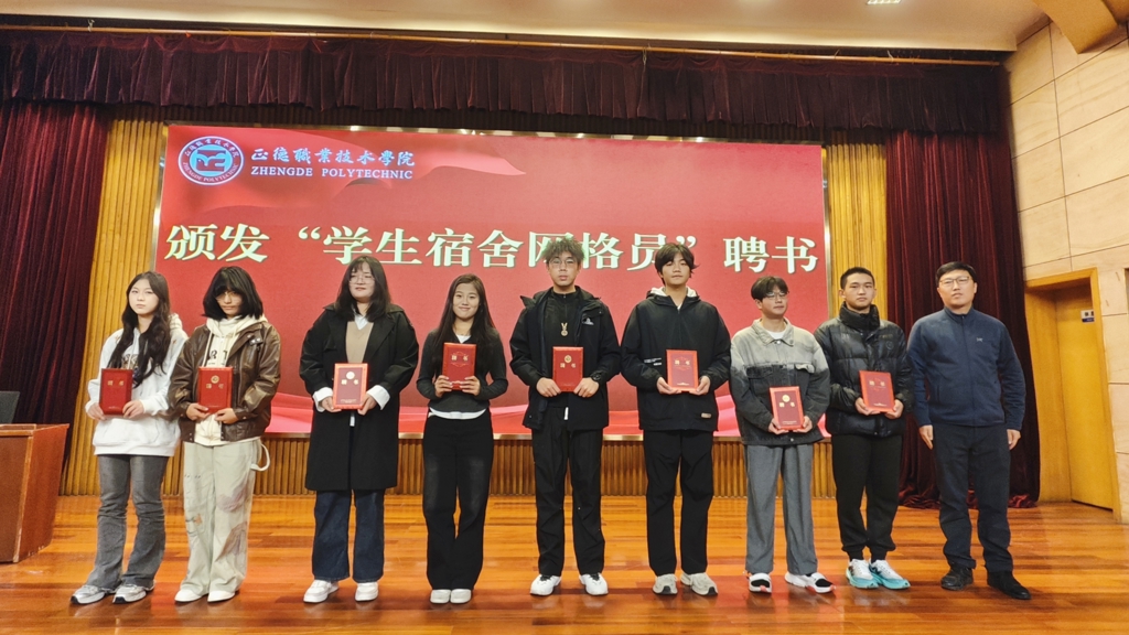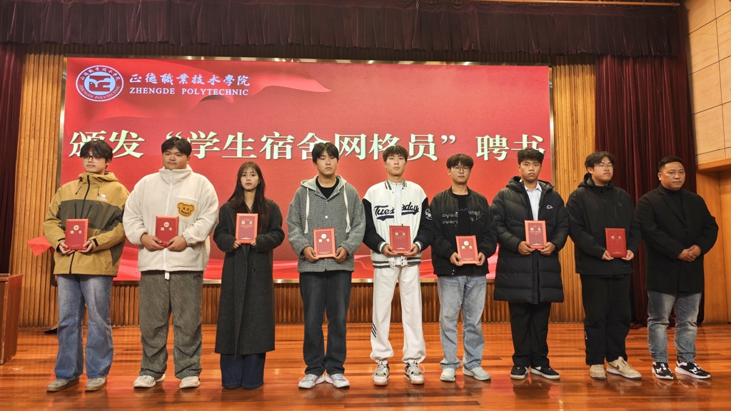 何华智宣读了此次聘任的学生网格员名单,并介绍了成人抖音 宿舍网格化管理办法和学生宿舍网格员工作要求。祝佳俊和陈宏波分别上台为公寓网格员颁发聘书。