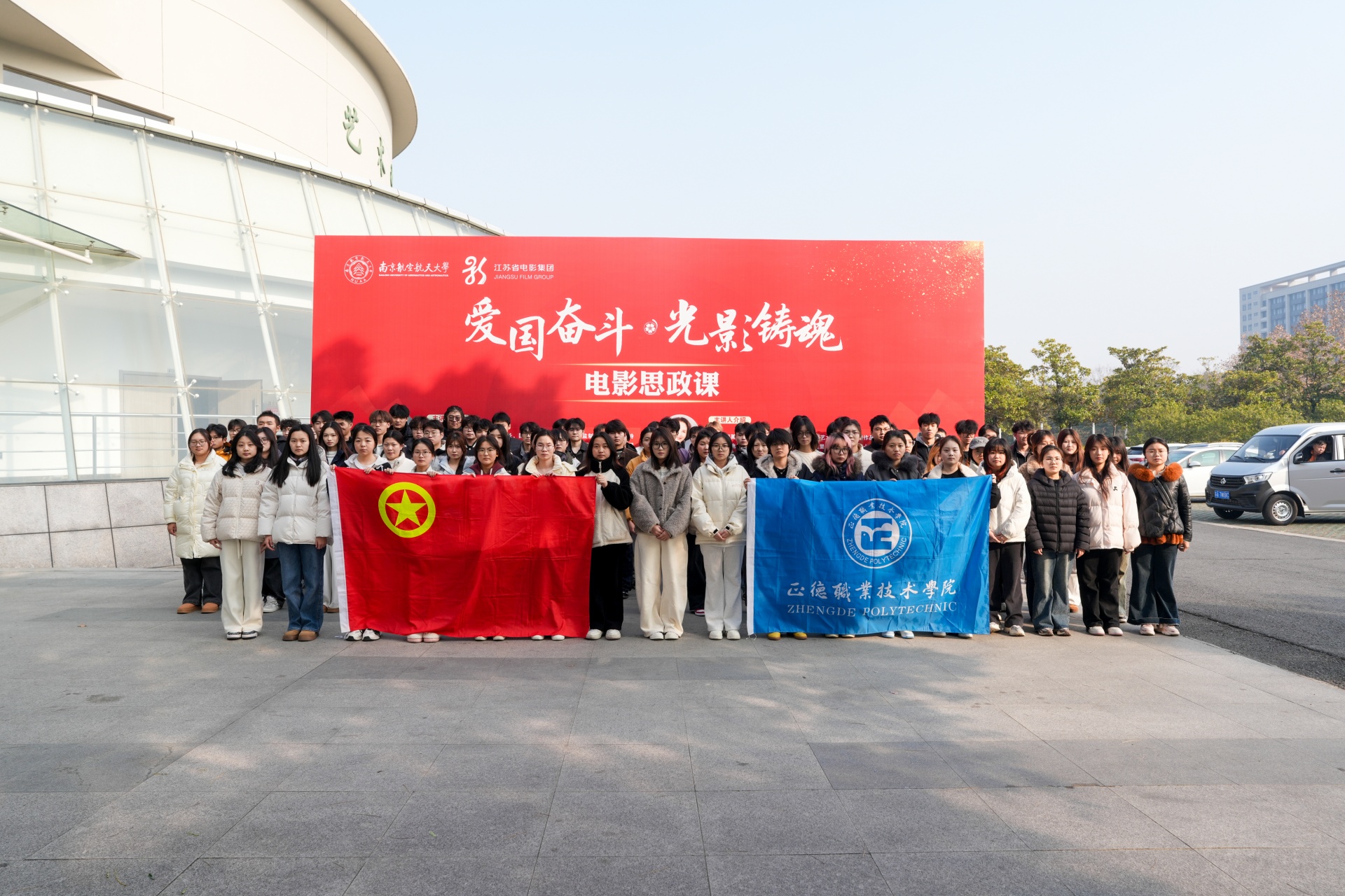 为坚定理想信念,厚植家国情怀,12月17日,成人抖音 组织100名学生代表赴南京航空航天大学参加“爱国奋斗·光影铸魂”电影思政课活动。此次活动不仅是一次视听盛宴,更是一堂行走的、沉浸式的“大思政课”,让成人抖音 学子在光影艺术中感受时代脉搏,在思想碰撞中坚定理想信念。