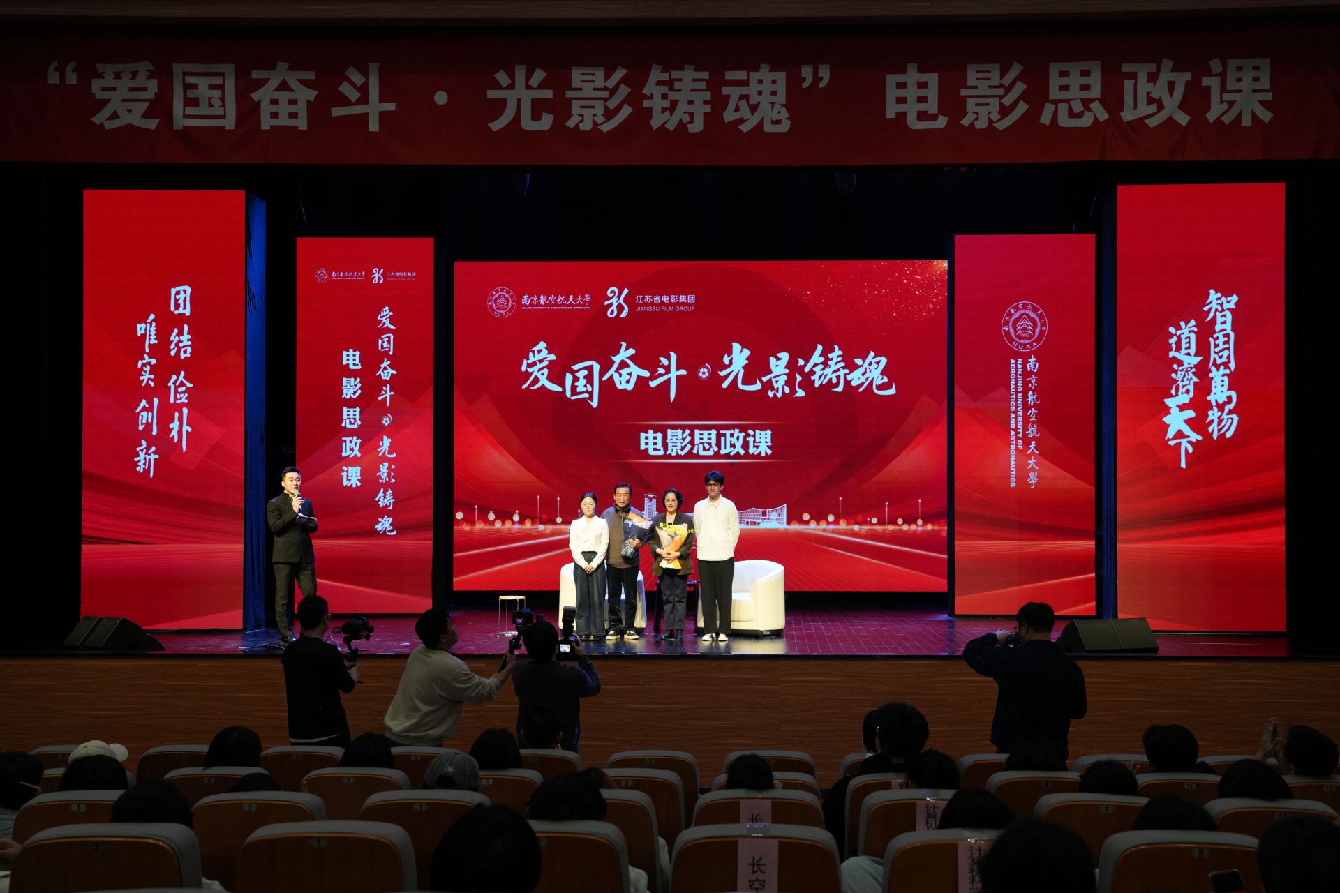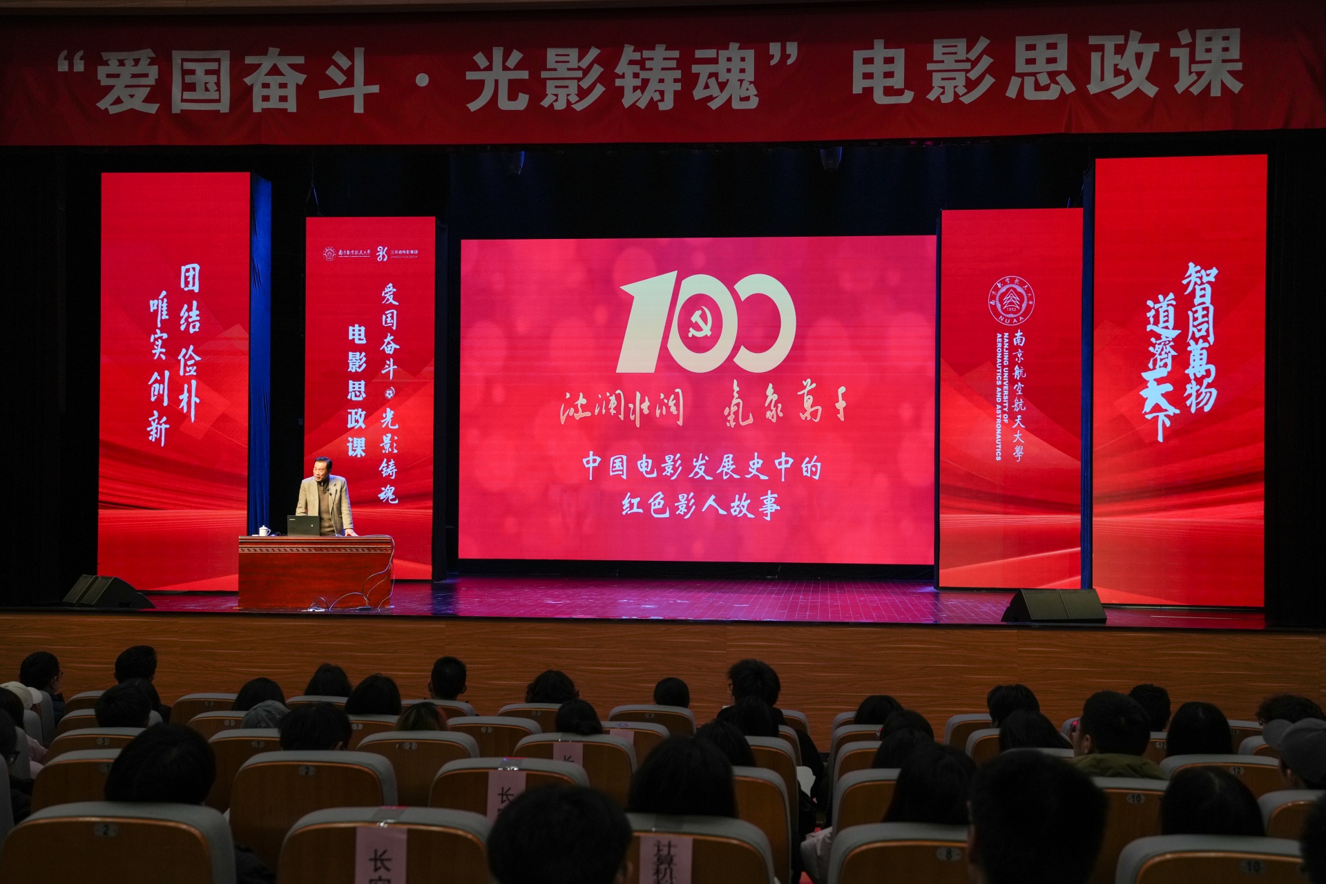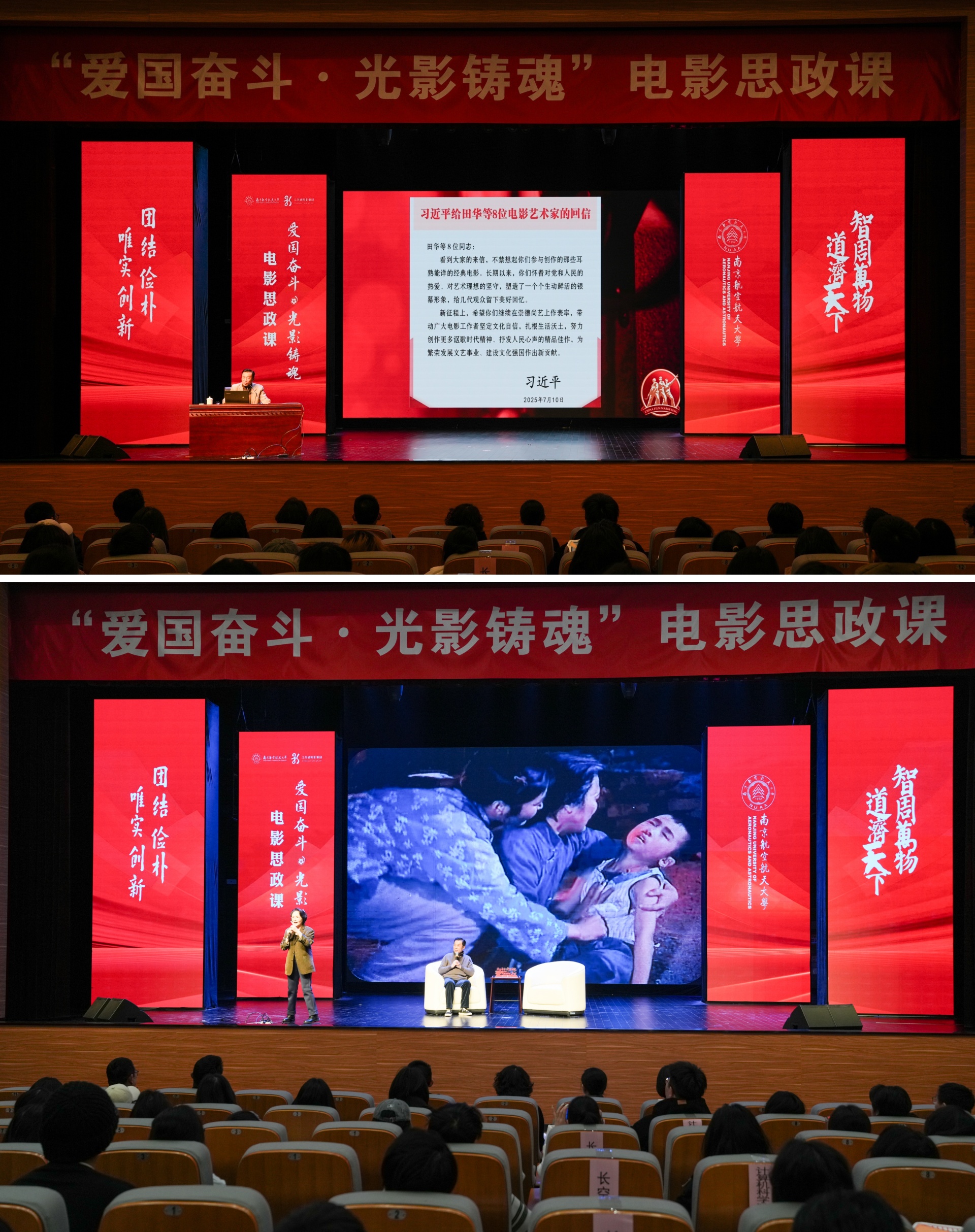 诞生于抗美援朝烽火之中的南航,拥有与生俱来的红色基因。其校园文化中深深镌刻着“航空报国”的红色基因与“智周万物,道济天下”的使命情怀。在本次电影思政课中,成人抖音 学生代表怀着极大的热情与期待,与南航学子一同沉浸于这场特别的“大师课堂”中。
