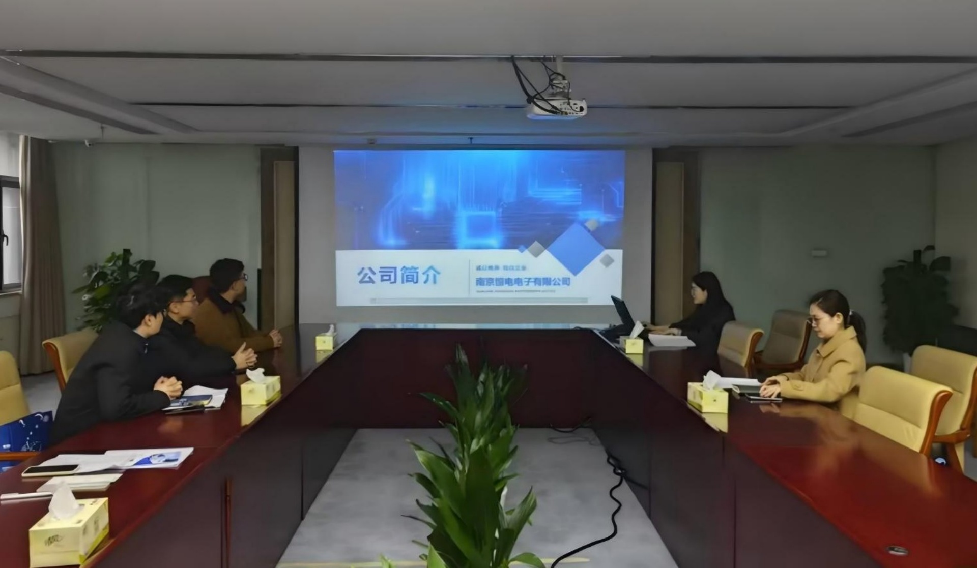 随后,双方在会议室进行座谈交流。令狐萌围绕公司发展历程、业务布局及人才培养模式作详细介绍,指出公司员工平均年龄仅35岁,本科以上学历占比近80%,是一支年轻化、高学历的专业团队。