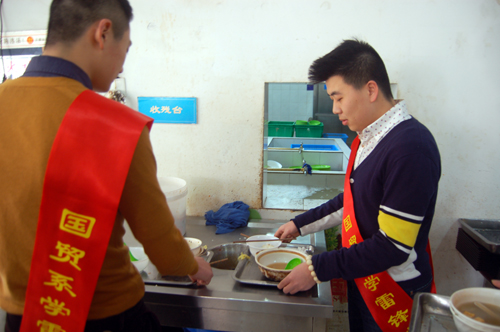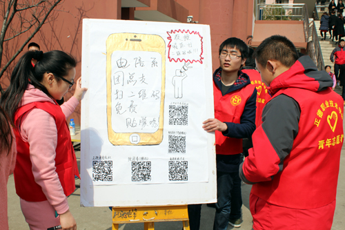 当天,活动主要通过宣传板、手绘海报、横幅、发放南京青年志愿者卡等形式,积极开展各自具有典型特色的志愿服务活动。电子与信息技术系的志愿者们发动全院师生关注成人抖音 共青团官方微信,只要拿出手机扫一扫,便可以得到免费贴膜、维修手机、电脑的服务。工商管理系的志愿者们则在3月1日利用周末时间前往该系社会实践基地——南京金色夕阳敬老院看望老人,陪老人聊天,帮老人剪指甲、读报纸,用点滴行动为老人们排解生活的单调和苦闷。艺术设计与建筑工程系的志愿者开展了“向大自然道歉”环保志愿服务活动,他们前往翠屏山捡拾垃圾,旨在用实际行动唤起人们的环保意识。同时,该系志愿者携手江宁团区委的志愿者们,相约江宁万达,精心张罗了一场快闪热舞,用欢快的歌舞开启“志青春·迎青奥”的热潮。汽车工程系的志愿者们结合自身专业为全院车辆提供清洗、轮胎检查、测量胎压等服务,老师们坐上干净明朗的校车心情倍感愉悦。机电工程系的志愿者们开展“光盘”行动,号召广大学生杜绝“舌尖上的浪费”现象,践行雷锋同志勤俭节约的意识,接力加入“光盘”一族。国际经济与贸易系的志愿者们关注那些平时默默为同学们提供服务的人,秉承亲身体验的原则,今天当一回宿管工作人员、食堂服务人员,从一点一滴中的体会他们的不易,更加珍惜他们的劳动成果。民用航空系的志愿者一大早前往教学楼,赶在8点钟上课前为辛勤教学的老师们打扫办公室,还利用课余时间擦洗校园橱窗。院团委伙管会的志愿者在这一天,为食堂服务人员提供了清洁用品,架起食堂和同学之间的桥梁。