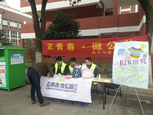 上午11.30分,学雷锋活动正式拉开帷幕,作为电子与信息技术系坚持多年的公益活动,志愿者们再次拿起工具,展示自己所学专业,免费为全院师生电脑手机贴膜和除尘清洁,同时“正青春·微公益”志愿者团队为学雷锋,传递爱心,关爱偏远山区儿童,面向全院师生回收旧衣服,把身边的爱传递到更多人手中,温暖人心。
