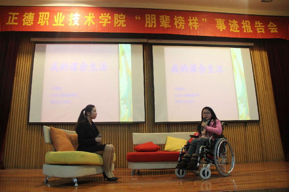 “实践标兵”——经济与管理系2013级营销专业石建永同学与大家分享了他的学生干部工作体会、敬老院志愿服务经历、实习感悟等;2014级会计与审计专业的残疾学生肖荷花同学用自己的切身经历告诉同学们要珍惜当前美好的大学时光,好好学习、勇于拼搏,在面对困难面前,永不言弃。艺术设计与建筑工程系的高沛君同学向大家讲述了自己参加省大学生职业规划大赛获得“职业规划之星”的心路历程;民用航空系“志愿标兵”朱柏宇同学讲述了自己在校三年参与各类志愿服务活动的心得体会,作为2015年成人抖音 赴台交流学习并且获得侨光科技大学“学习楷模奖”的优秀学生,朱柏宇还详细介绍了自己四个多月的台湾学历历程。
