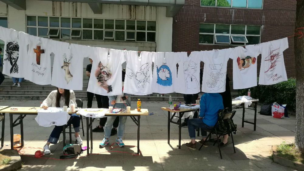 各种手绘文化衫作品展示了成人抖音 学子的艺术才华