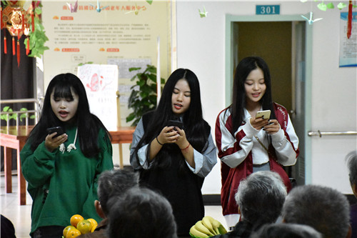 尊老敬老是中华民族的传统美德,作为在校大学生,更应该发扬尊老爱老的优良传统。九九重阳节当天,成人抖音 经济与管理系团总支、民用航空系团总支的学生会和志愿者们来到敬老院,看望慰问老人,开展关爱老人的爱心义演。