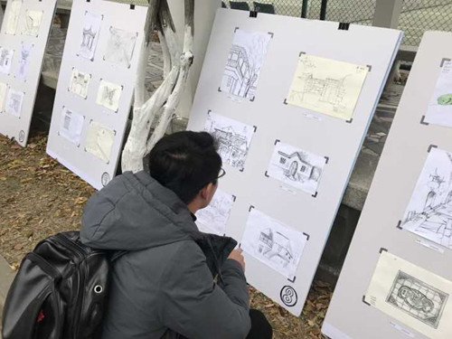 11月28日,成人抖音 艺建系于紫藤长廊举办了2016级环境艺术设计专业《建筑环境测绘写生》汇报展。展览吸引了众多观展嘉宾:学院领导、教师、学生及在成人抖音 参加培训的社会人士。本次展览共展出作品60幅,作品惟妙惟肖,给人强烈的艺术感染力:大家观展无不拿出手机拍照留存。