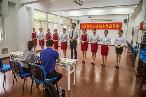 5月29日下午,“民用航空系高铁专场招聘会”在成人抖音 报告厅成功举办。成人抖音 民用航空系2016级空中乘务专业100多位学生成功通过高铁乘务、安检、地勤等岗位的面试。