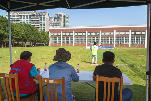 上午8点,翟磊老师带着学生进行了考前的最后一次适应场地的训练,学生非常认真投入,将早已熟记于心的考试标准动作完整地操作一遍。电子与信息技术系杨立生老师、徐宏庆老师早早地来到考场,为考生服务。本次考试15名学生中13个考5级,2个考6级,这样的规模在省航协是首次,5级证书全省目前总共才30张。省航协秘书长、环世达公司的王剑总经理亲自到场督考。