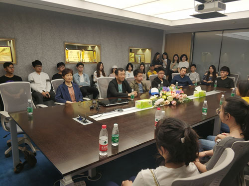 参观的第一站来到了浙江亚厦装饰股份有限公司江苏分公司设计院,得到了该院院长王文东、总监余晓轩、三所院长郭嵘的亲自出席和热情接待,带领大家参观了公司办公环境,余晓轩详细介绍了公司的主营业务、行业排名、运用模式及近几年的重要装饰设计项目等情况。我们了解到亚厦装饰在行业内综合排名全国第一,而江苏区设计院是在集团内连续六年排名第一的单位。接下来余晓轩以座谈会的形式,给同学们上了生动的一课。他认为学校所学习的都是基础,同学们必须在生活中多观察、多感受、多交流,才能将设计做得更好。余晓轩还为同学们明确了一个概念:室内设计主要由方案设计和施工图设计两部分组成,前者要求高,而后者将渐渐被人工智能取代,迈入标准化、环保化、工艺精细化时代。亚厦作为行业龙头企业,正在将这种标准化设计、工业化装配的工艺运用在室内装饰设计上。作为一个涉猎广泛、配备齐全的大型公司,余晓轩希望通过这次活动,启发同学们明确学习目标、努力钻研,成为设计单位需要的人才。