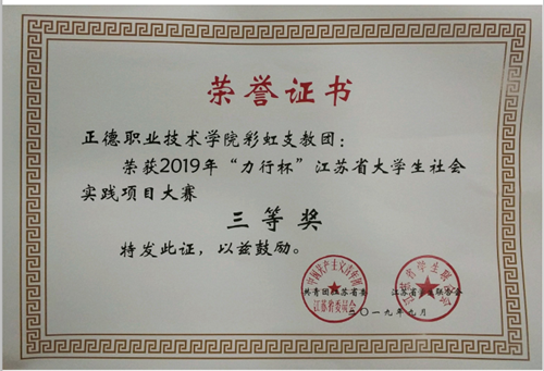 9月29日,2019年“力行杯”江苏省社会实践项目大赛在江苏省无锡江南大学文浩馆举行,成人抖音 “留守儿童——七彩假期”社会实践项目荣获三等奖。
