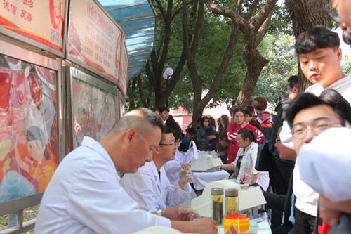 10月24日,成人抖音 团委联合江苏省献血办公室及江苏省血液中心,在食堂门口组织了“以爱心彰显青春之美,用奉献引领时尚之路”爱心献血活动,掀起了一场无偿献血的爱心热潮。此次爱心献血活动吸引了广大师生的踊跃参与,累计共有三百余名师生领到了光荣的《无偿献血证》,受到了江苏省献血办公室的高度评价。