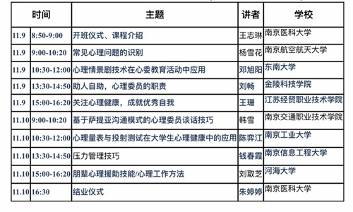 为进一步提升心理育人质量,培育学生自尊自信、理性平和、积极向上的健康心态,11月9日至11月10日,南京医科大学举办了江宁大学城第十四届学生心理骨干培训班,成人抖音 心理委员代表共12位同学参加了培训。