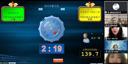 本次辩论赛决赛以“当代年轻人应该君子不器还是君子要器”为辩题。在比赛前,参赛双方都做了充分准备,辩手们在场上唇枪舌剑、激烈交锋。陈述环节,正反方一辩迅速将全场气氛点燃。盘问环节,双方紧紧抓住对方陈述词的不足紧追猛打,激烈交锋。自由辩论阶段,双方你来我往,言辞犀利,就辩题展开论述,火花四溅,又是一番唇枪舌战,选手的口才和应变能力在这一环节呈现得淋漓尽致,同时也将辩论赛推向了高潮。雄辩的口才,敏捷的思维,有力的论证,娴熟的技巧,优雅的风度,辩手们的精彩表现吸引了大批直播间观众点赞送花。