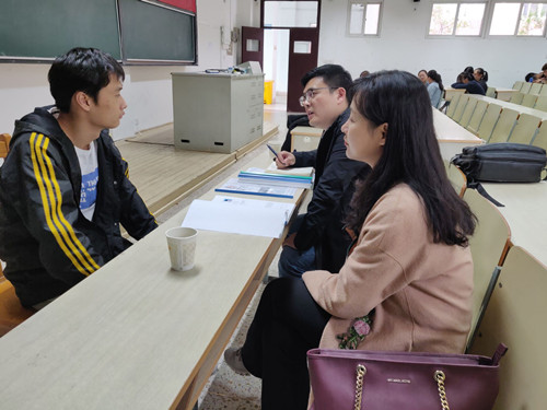招聘会得到了系领导的高度重视,电信系主任王高山、副主任赵欣都到招聘会现场与用人单位和毕业生进行深入交流。在招聘会现场,首先由八五一一研究所产品部副主任胡梦婕向同学们介绍了公司简介、公司布局、公司发展历程等方面情况。接着八五一一研究所综合部副部长滕衍强又向同学们介绍了此次招聘的岗位目标及要求,并对同学们提出的问题进行了解答。八五一一研究所综合办人力资源部专员潘媛媛对同学们提交的简历进行筛选,并在宣讲会结束后,当场对简历符合要求的同学一个个进行了面试。